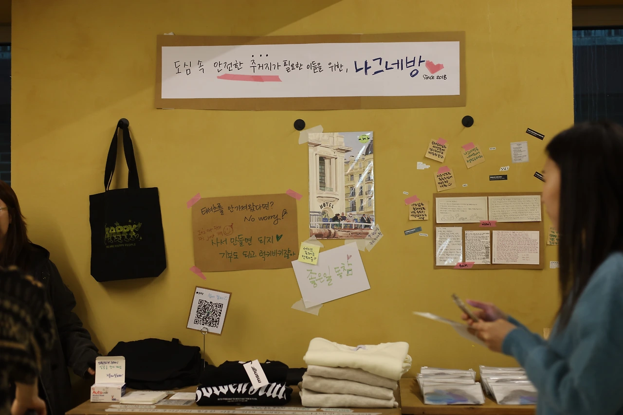 이 질문에 답하기 위해 다시 한번 대학 시절로 돌아가야 합니다. 친구들에게 힘이 되기 위해 예빈과 제가 만들었던 하빈하우스 시즌 1. 쓰리룸 빌라를 계약한 우리는 나머지 방 한 칸을 어떻게 쓸까 고민하다가 ‘필요한 사람에게 나누어주자’라고 다짐했습니다. 그 순간, 나그네방이 세상에 태어났습니다. 집과 학교가 멀어 인근의 주거지가 필요한 사람, 여러 이유로 도피처가 필요한 사람들이 나그네방을 찾아 주었습니다. 이후 시간이 흘러 주거 문제에 더 큰 경각심과 안타까운 마음을 가지고 있던 제가 나그네방을 도맡아 운영하게 되었고, 지금까지 4개의 집을 거쳐 7년 간 안전한 보금자리가 필요한 이들에게 나그네방을 제공하고 있지요. 이제 몇 명이나 우리 집에 머물다 갔는지 셀 수가 없습니다. 최소 40여 명은 살다 갔을 테고, 최장 기간 나그네방에 머물렀던 사람은 1년 8개월, 짧게는 보름 정도를 머물다 간 이도 있습니다.