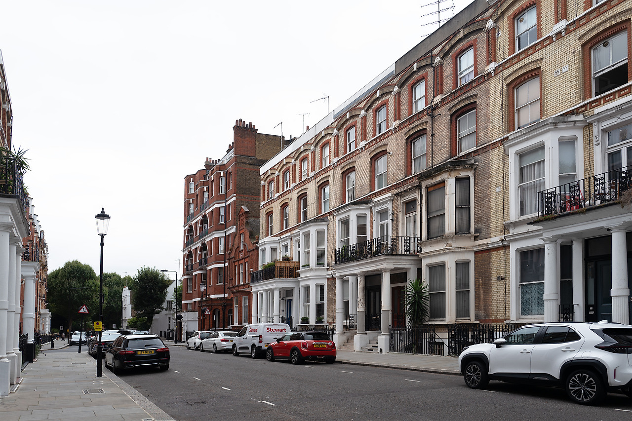 나는 학교 근처에 정말 운 좋게 합리적인 가격으로 켄싱턴에 집을 구할 수 있었는데, 이 플랫은 18세기에 지어진 조지안 양식으로 지어진 건물이었다. 조지아 주택양식은 일반적으로 대칭적인 정면을 가지며, 흰색 문과 업다운 슬라이딩 창문이 있는 2-3층짜리 건물이다.