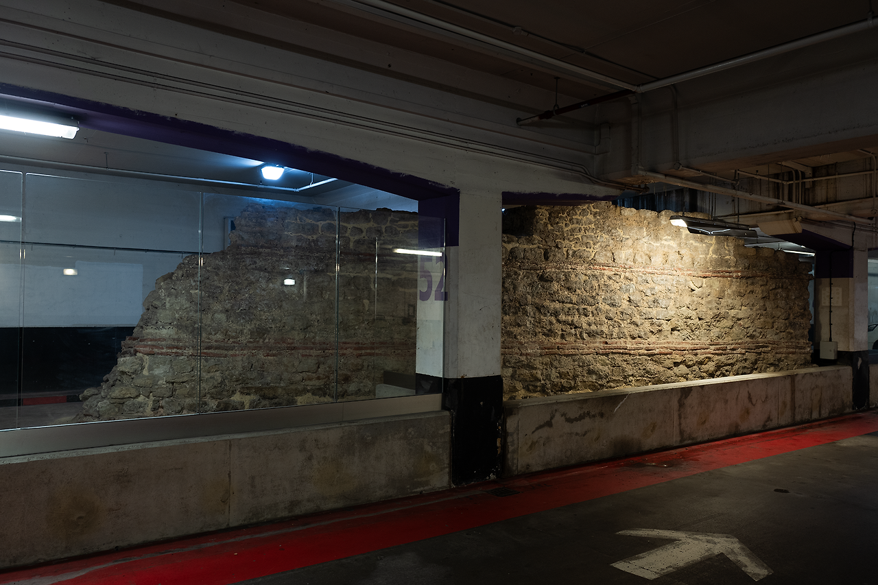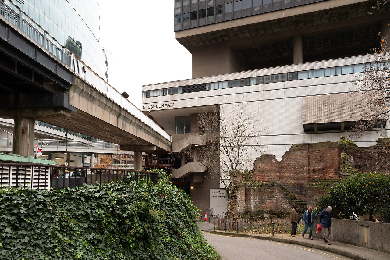 주차장에서 빠져나오자 현재는 문을 닫은 뮤지엄 오브 런던의 때탄 흰색 타일벽이 성벽처럼 보이고 그 앞에는 군데군데 부서진 런던 월이 다른 성벽을 이루고 있었다. 도시의 오래된 흔적과 현대 건축물이 겹쳐 보이는 이 광경은 시간이 켜켜이 쌓여 만들어진 한 도시의 역사를 눈앞에 펼쳐 보이는 듯했다.