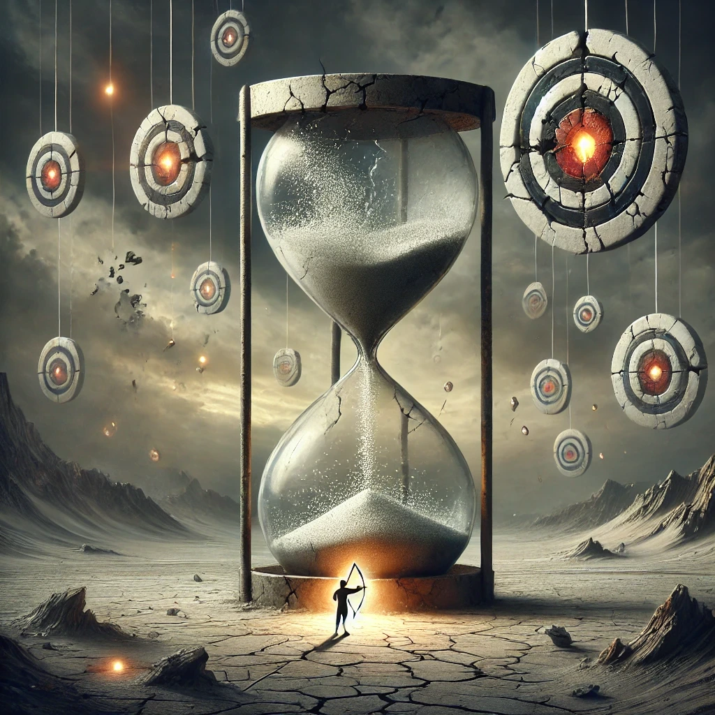 그렇다면 과연 이 작동(삶)을 우리는 어떻게 시도해야 하는가? 그렇게 미증유의 불안에 대응하는 임의의 과녁이 있고, 언젠가 당 과녁에 도달하더라도 예의 ‘불안’은 사라지기는커녕 외양만 다른 새로운 과녁을 우리에게 매번 다시 폭로한다손 치더라도 우리는 [누구나] 그 허망한 매 과녁을 매번 다시 쫓을 수밖에 없을 텐데. 우리는 그리 문제 하나를 해결하며 문제 둘을 다시 생산하는 거듭된 [순간]의 반복 속에서도 [지속]적 삶을 구가한다. 매 과녁을 내달리면서, 그 과녁이 가상의 궁극적인 과녁(의 [순간]이라는 헛된 망상)을 매달기 위한 허수아비에 불과하다는 것을 내심 깨달으면서라도 계속하여 [지속]적으로 내달려야만 하는 셈이다.