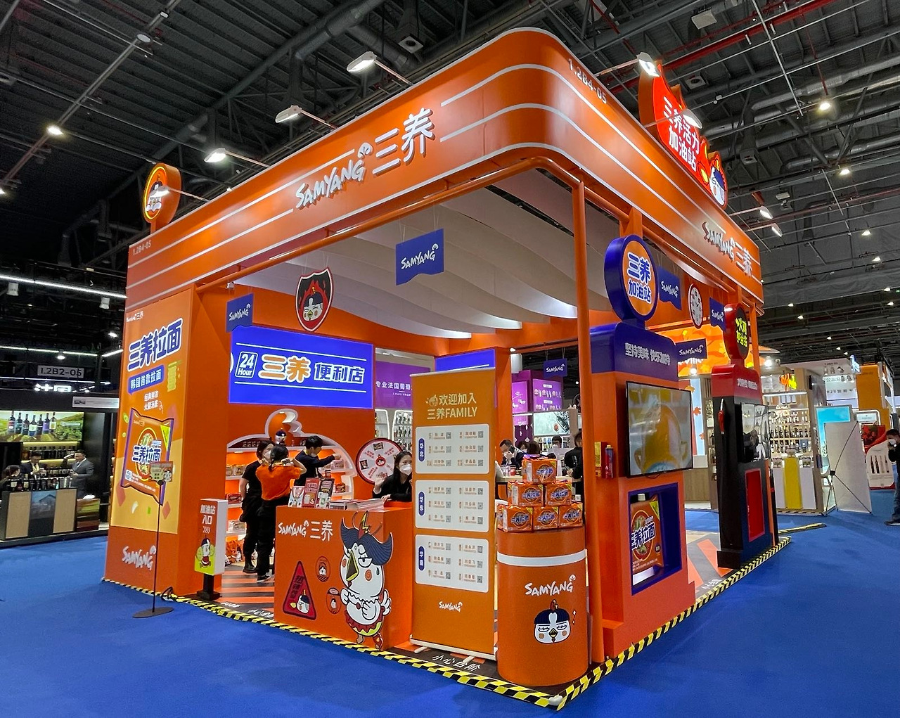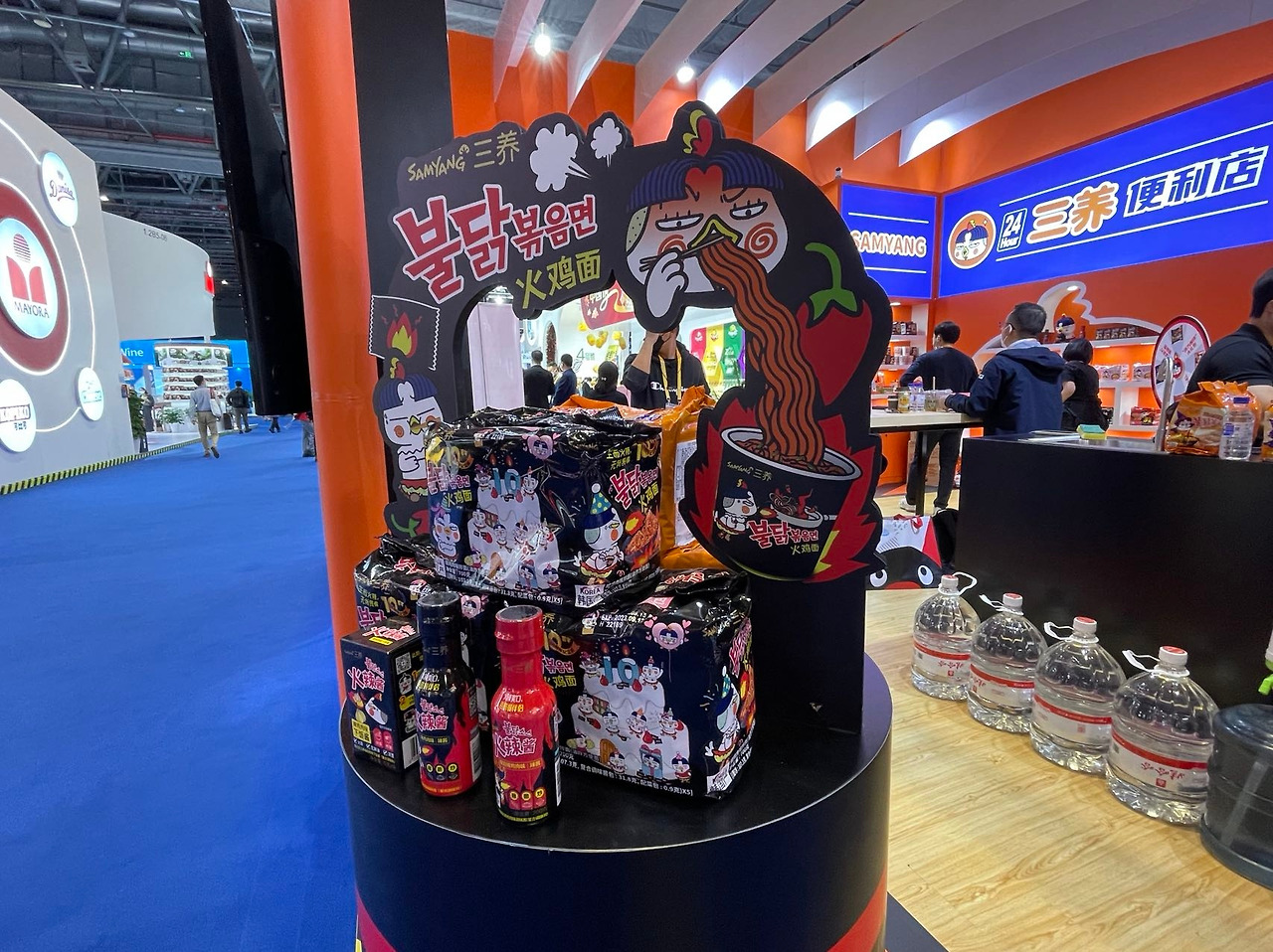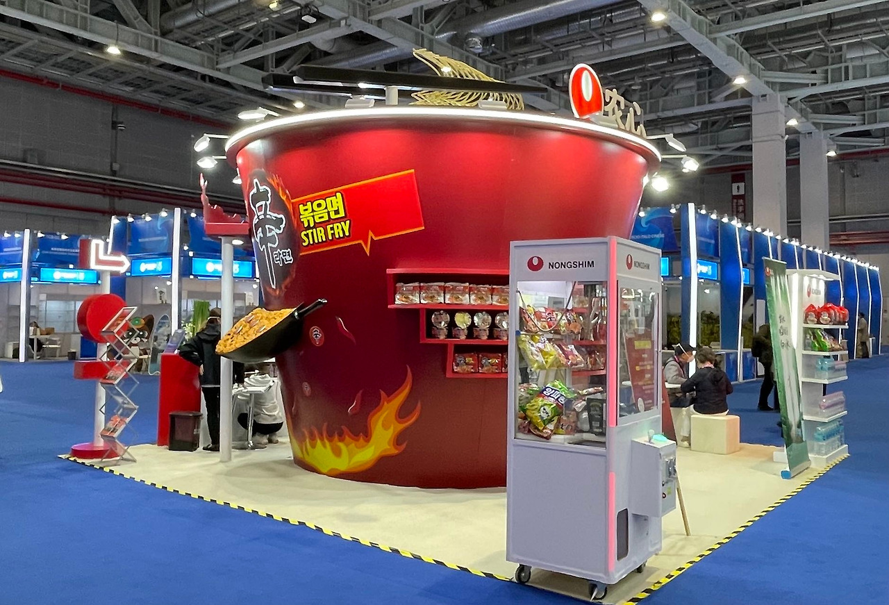 식품관부터 갔어요. 풀무원과 농심라면, 삼양식품, 오리온이 보이네요. 풀무원은 1 인식에 특화된 음식을 전시했어요. 농심은 컵라면 모양의 부스로 눈길을 끄네요. 삼양은 중국에 법인 설립한 지 1년 만에 이런 전시회에 부스 내고 참가하는 것 보니 뿌듯하네요.