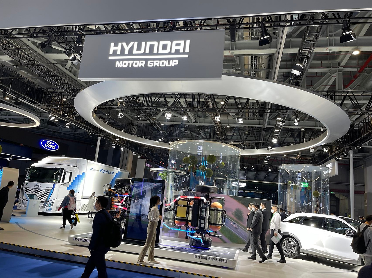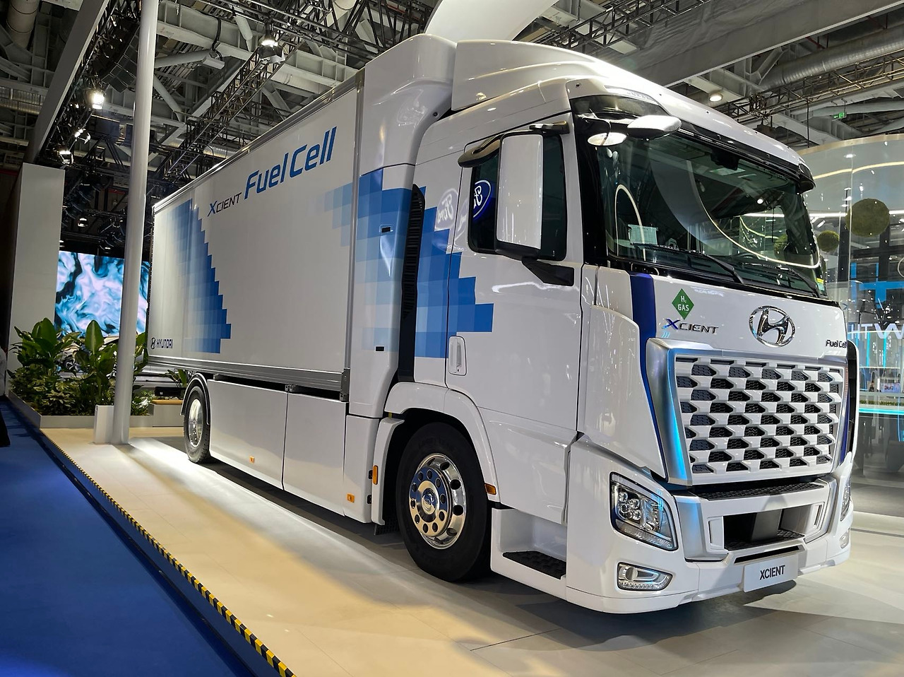 자동차관에서는 현대와 기아 부스가 있었어요. 실제 수소 트럭도 전시하고 수소 관련 장치도 전시해놨어요. 전 세계 내로라하는 자동차 브랜드는 다 부스 냈고 테슬라관에는 사람이 붐비네요.