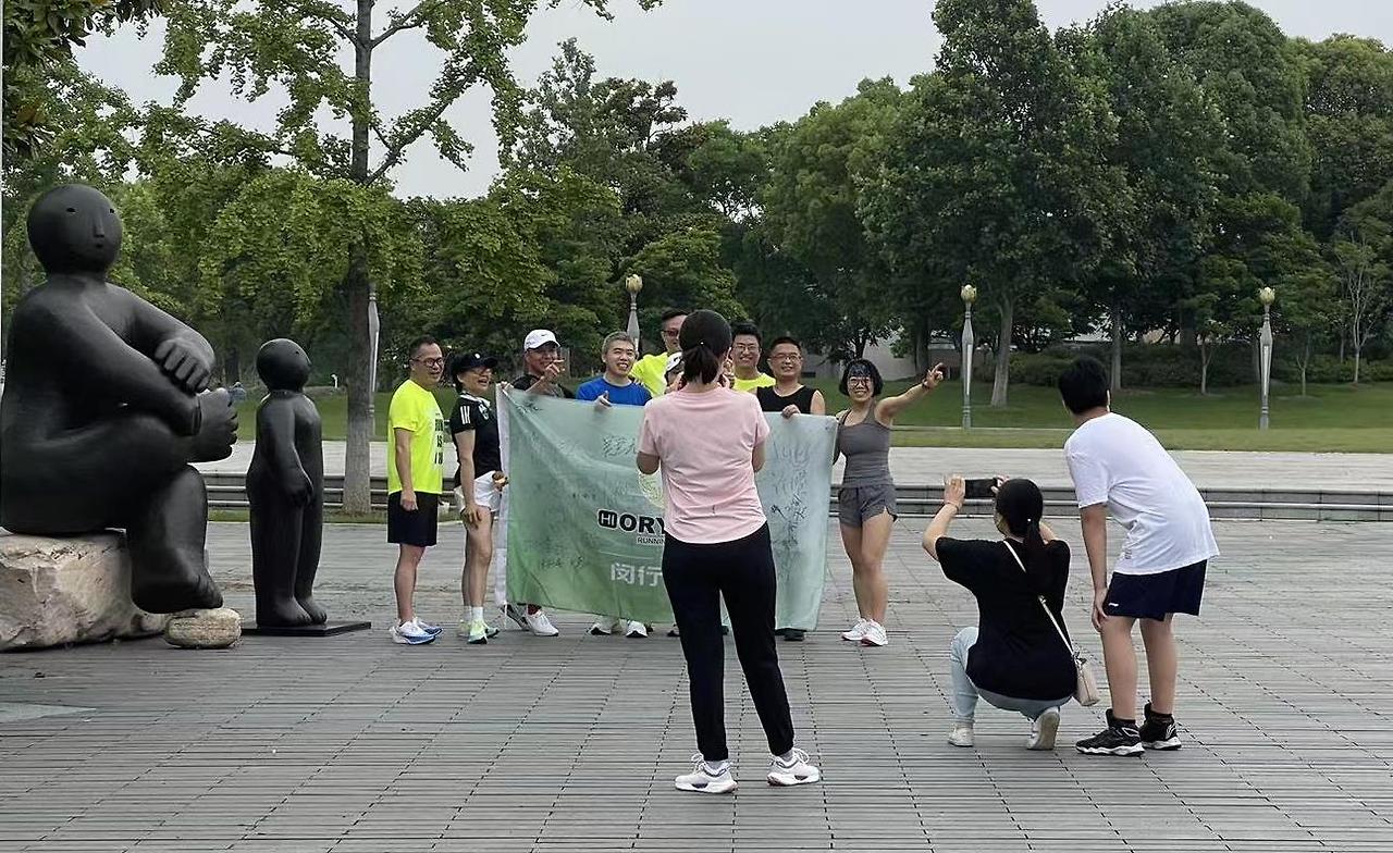 다시 시작된 마라톤 동호회 회원들이 모여서 플래카드를 들고 환호를 하고 있었습니다