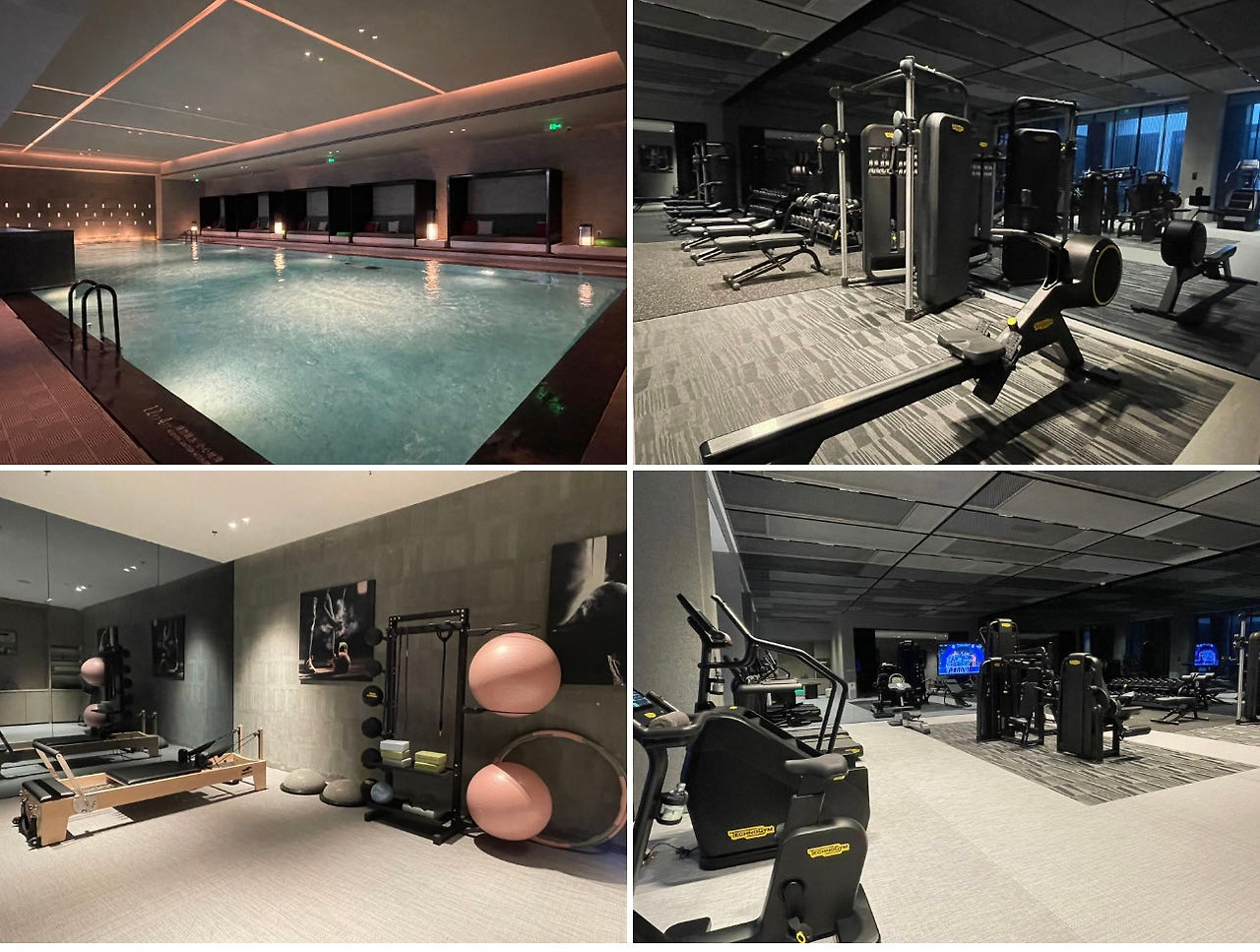 수영장, 피트니스, 다목적룸이 지하에 있어요. 지하에 있어도 하늘을 볼 수 있어요. 수영장, 썬베드는 동남아 리조트 분위기 나고 자쿠지도 있어요. 피트니스 기구들은 다 고급에 최근 기구이고 특이하게 필라테스 기구가 있어요. 다목적 룸에서는 아이들 대상으로 공연이나 행사를 할 수 있게 해 놨어요.