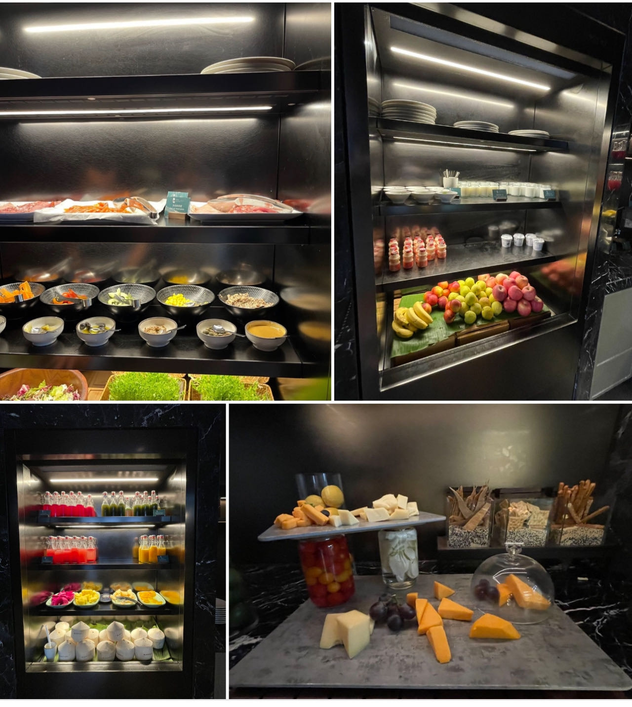 콜드 디쉬는 따로 구역을 만들어서 냉장에 신경 쓰면서 제공했어요. 베이커리 섹션에 진심이네요. 종류로 다양하고 일반적이지 않은 빵들이 많았어요. 차는 좀 아쉬웠고 식기는 일반적이었어요.