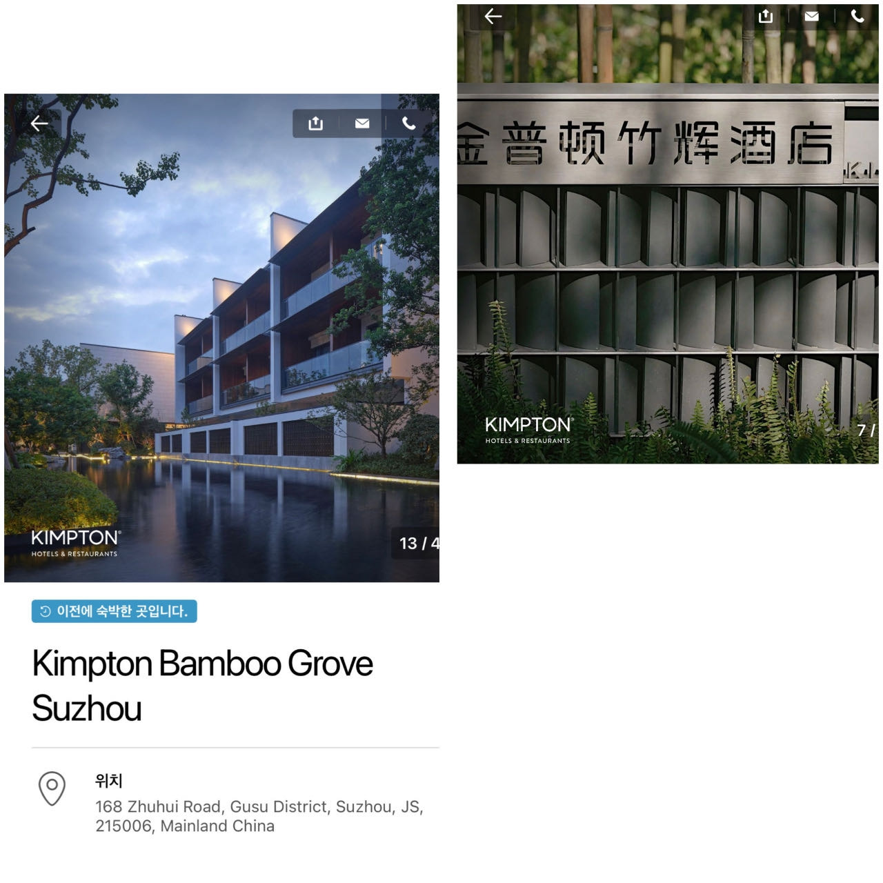중국에 하나 있는 킴튼호텔이 쑤저우에 있어요. 2022년에 문 연 신상호텔이에요. 상해에 짓고 있는 킴튼은 2023년 말 오픈 예정이고 해남도에 2025년에 문을 연다고 하네요. IHG브랜드를 달고 있지만 거의 내 갈길 간다 스타일이에요.