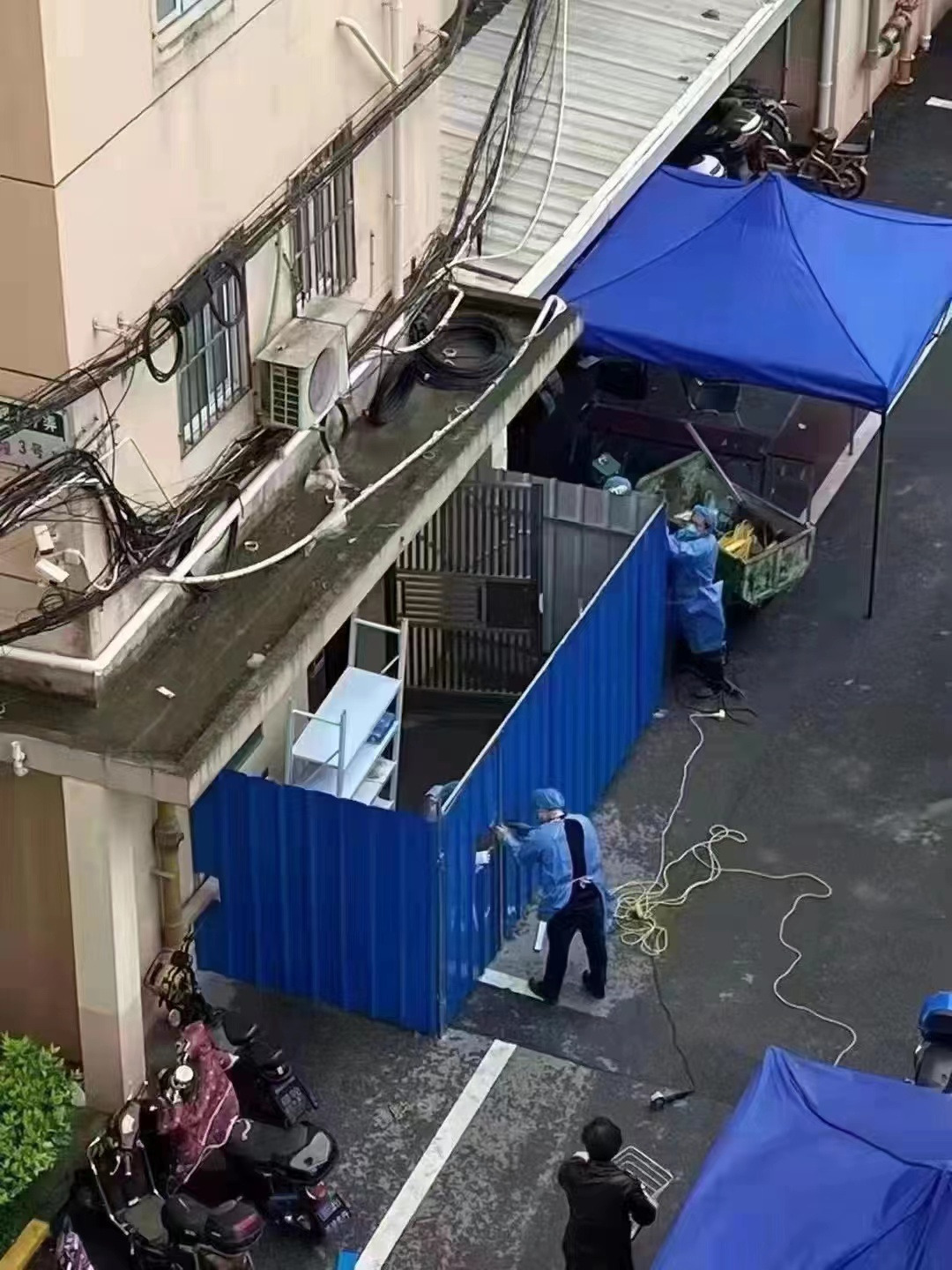 이 사진은 푸동신구의 아파트 봉쇄 사진입니다.