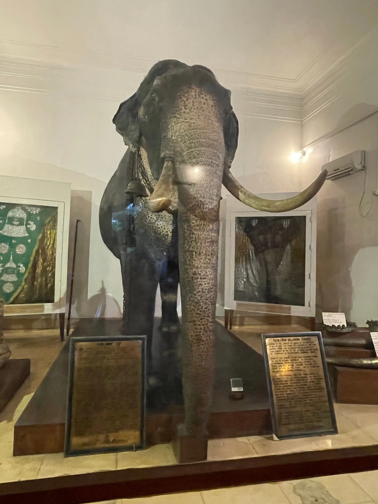 코끼리가 죽었을 때 온 국민이 슬퍼했고 지금 박제해서 불치사에 모셔져 있어요. 스리랑카 대통령도 불치사에 오면 이 코끼리에게 인사했다고 하니 스리랑카 서열 1위는 부처님 치아사리를 이는 코끼리예요.