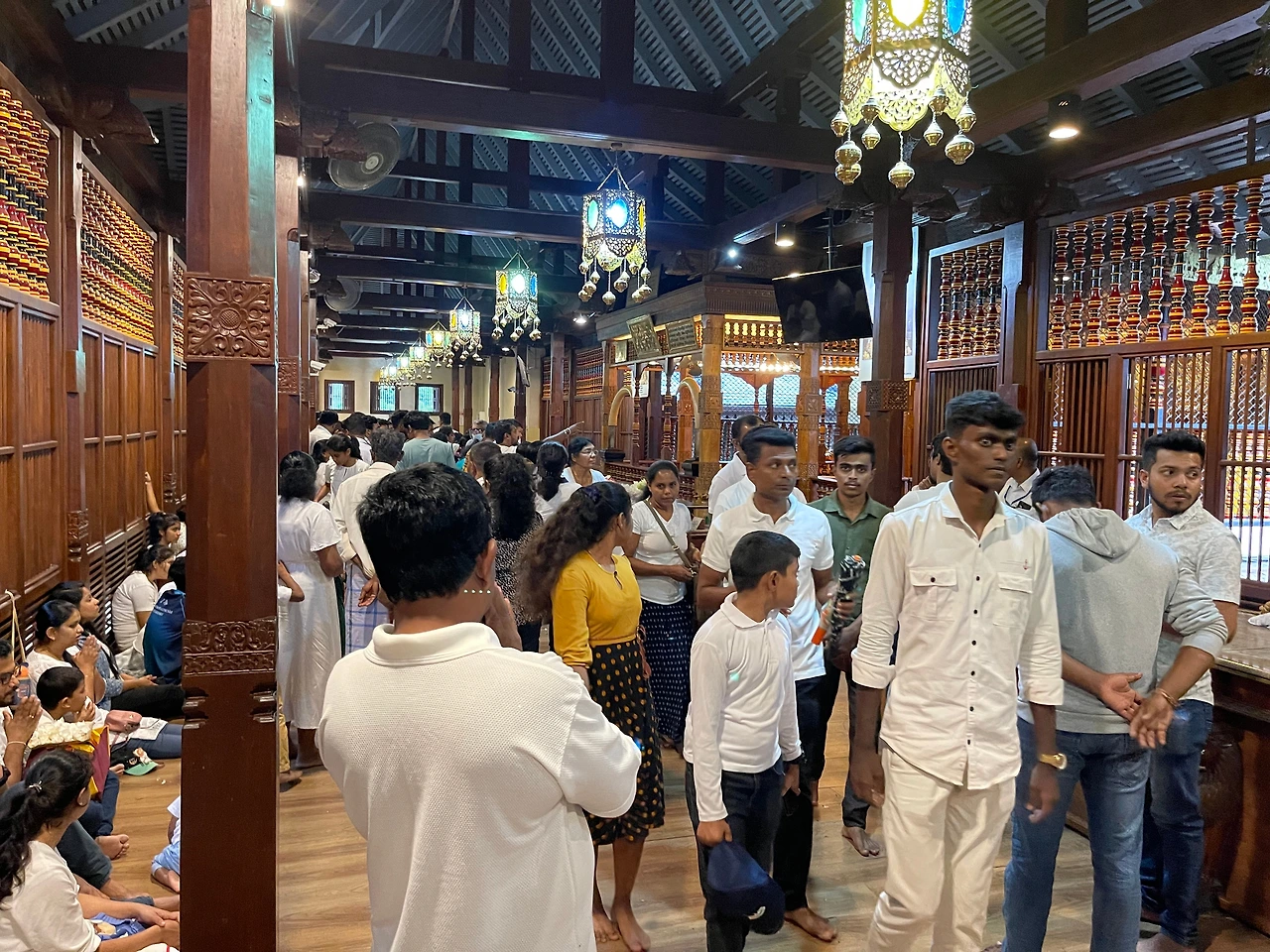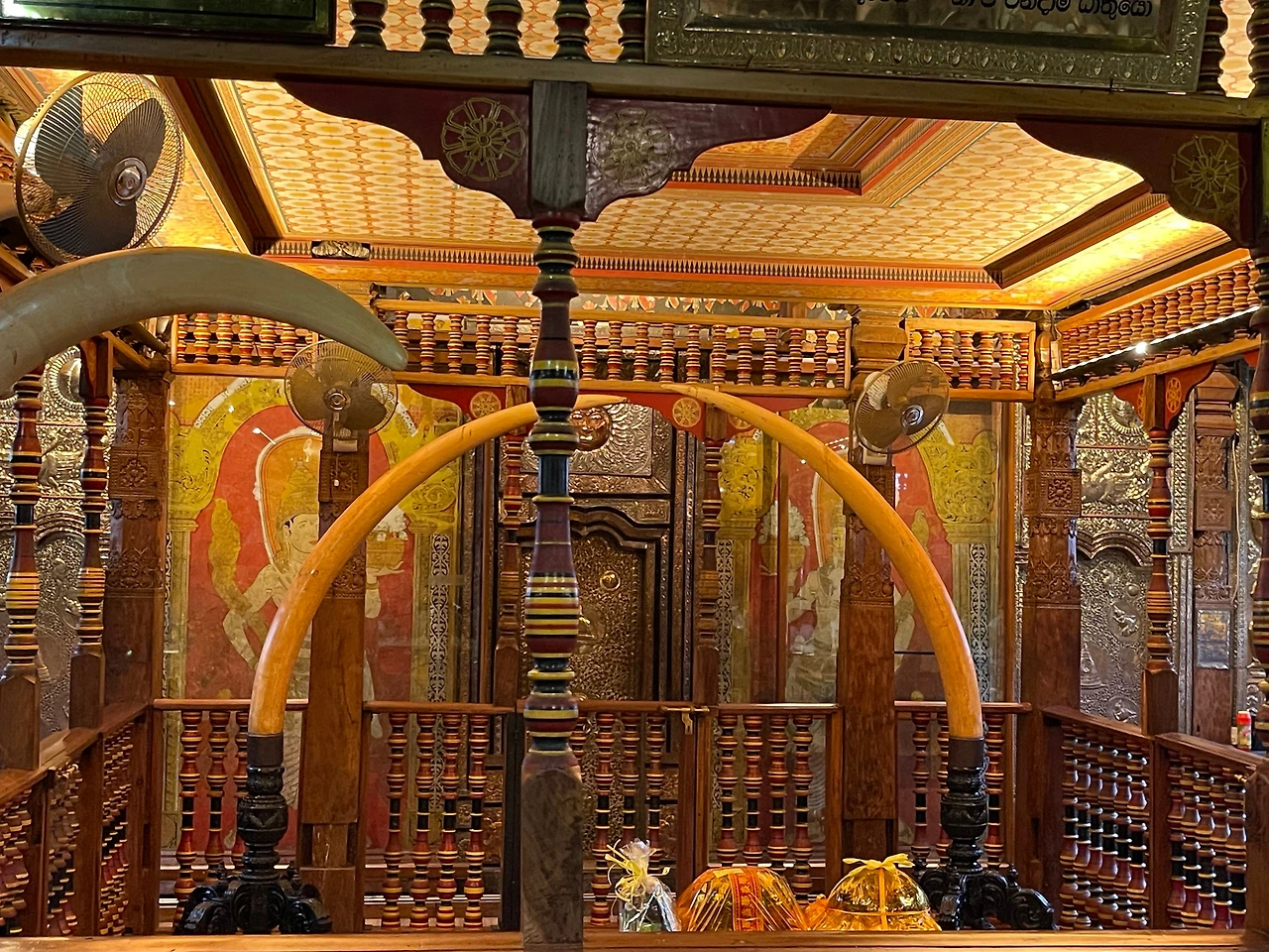 하루에 3번 공양 시간에 함이 들어있는 전각의 문을 조금만 열어요. 그때 보려고 많은 사람들이 모인대요. 1년에 한 번, 8월에 사리가 들어있는 함과 불치사에 있는 보물들을 코끼리 등에 실어서 캔디 시내를 도는 에살라 페라헤라 Esala Perahera 행사는 유명해요.