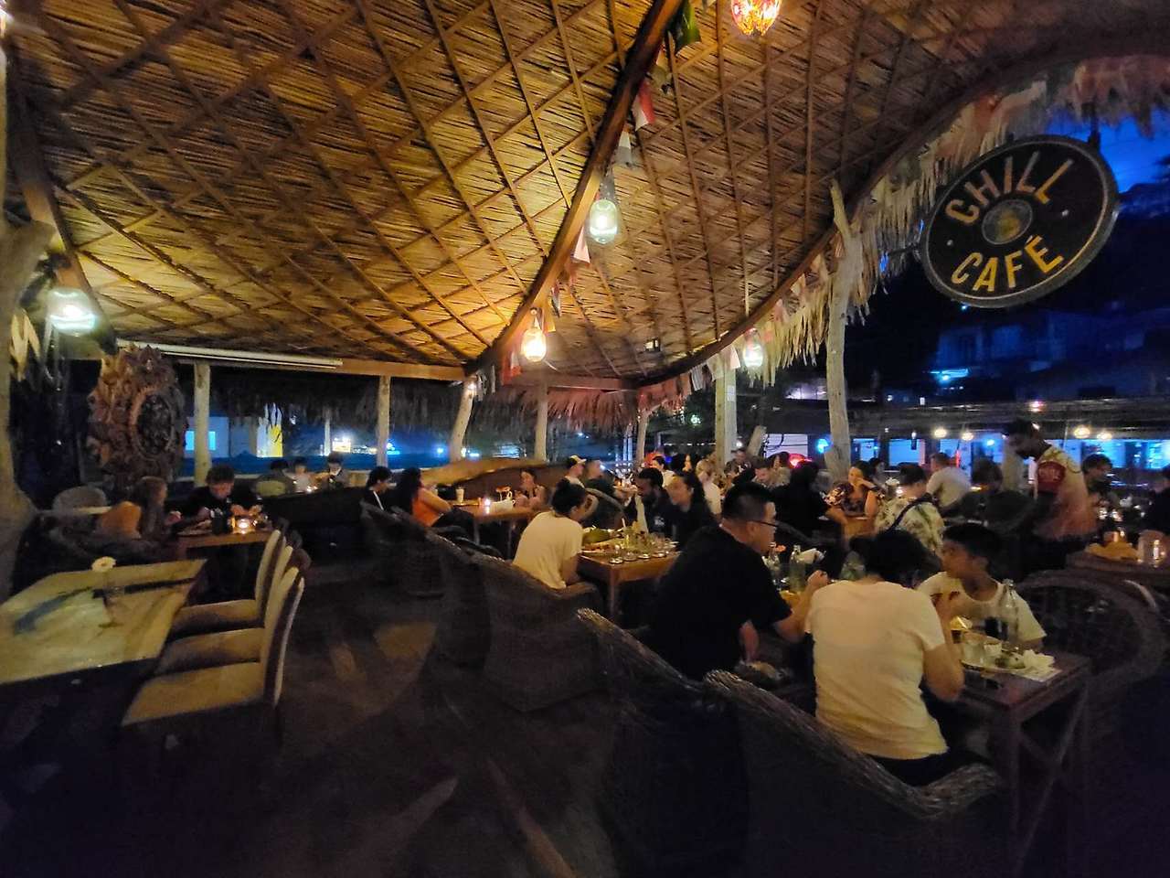 거리에 많은 식당이 있지만 칠 이 식당 하나만 사람들이 많아요. 사람들이 몰리는 곳에 몰리는 쏠림 현상이에요. 대부분 테이블이 찼어요. 7시 반에 사람 온다고 예약한 자리에 앉았어요.