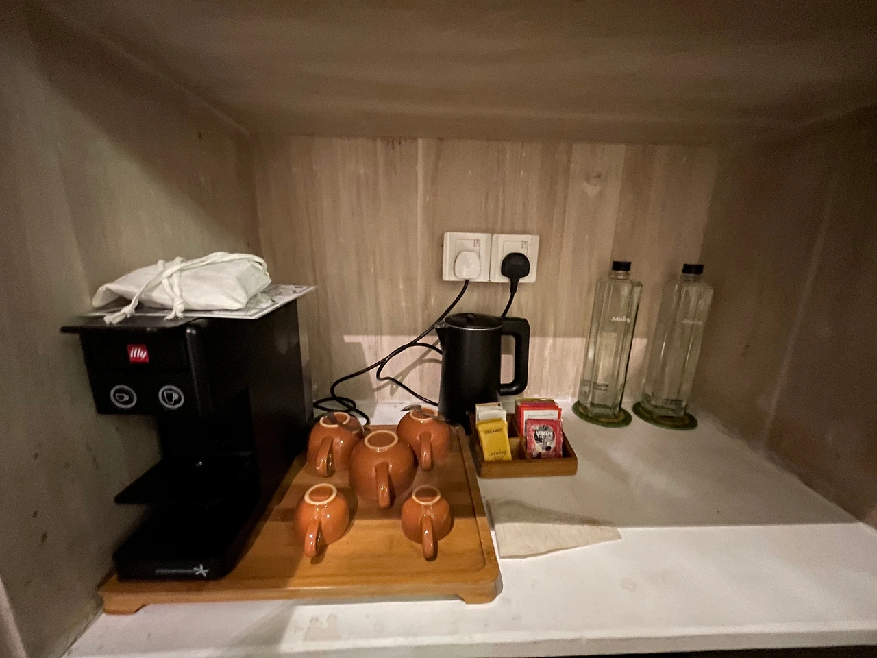 오랜만에 어메니티 다 있는 호텔이에요. 스리랑카 호텔에서 1회 용품 없는 곳들도 있어요. 일리커피머신 있어 좋았어요. 캡슐 더 달라고 해서 카페인 충전했어요. 밤에 자는 데 들판에서 온갖 동물들의 소리가 배경음악으로 들려요. 호랑이까지는 아닌데 뭔가 으르렁 거리는 소리도 나요. 방음이 될 수 없는 벽구조예요. 그래도 잠은 오네요.