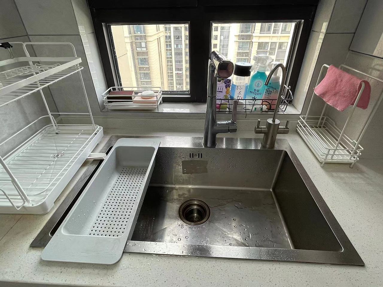 한국에 계신 분들은 이 싱크대가 뭐가 크냐고 하겠지만 중국 사람들은 이 싱크대도 반으로 나눠서 만들어요. 그릇이 조금만 커도 싱크대에서 못 씻고 욕조나 샤워 부스에 가서 씻어야 한답니다.
