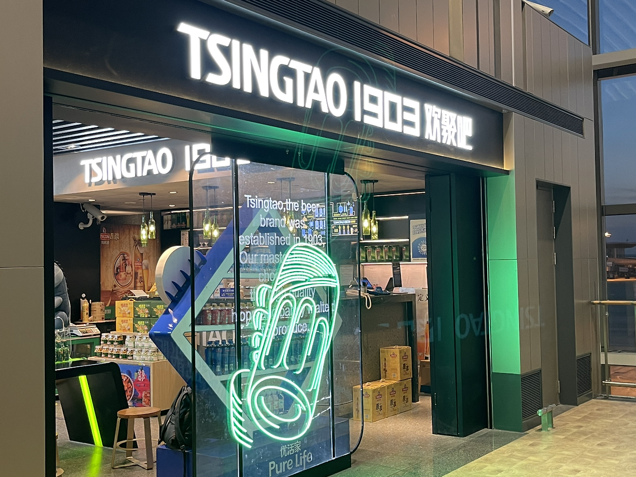 술 권하는 칭다오 공항에서 한잔 중이에요
