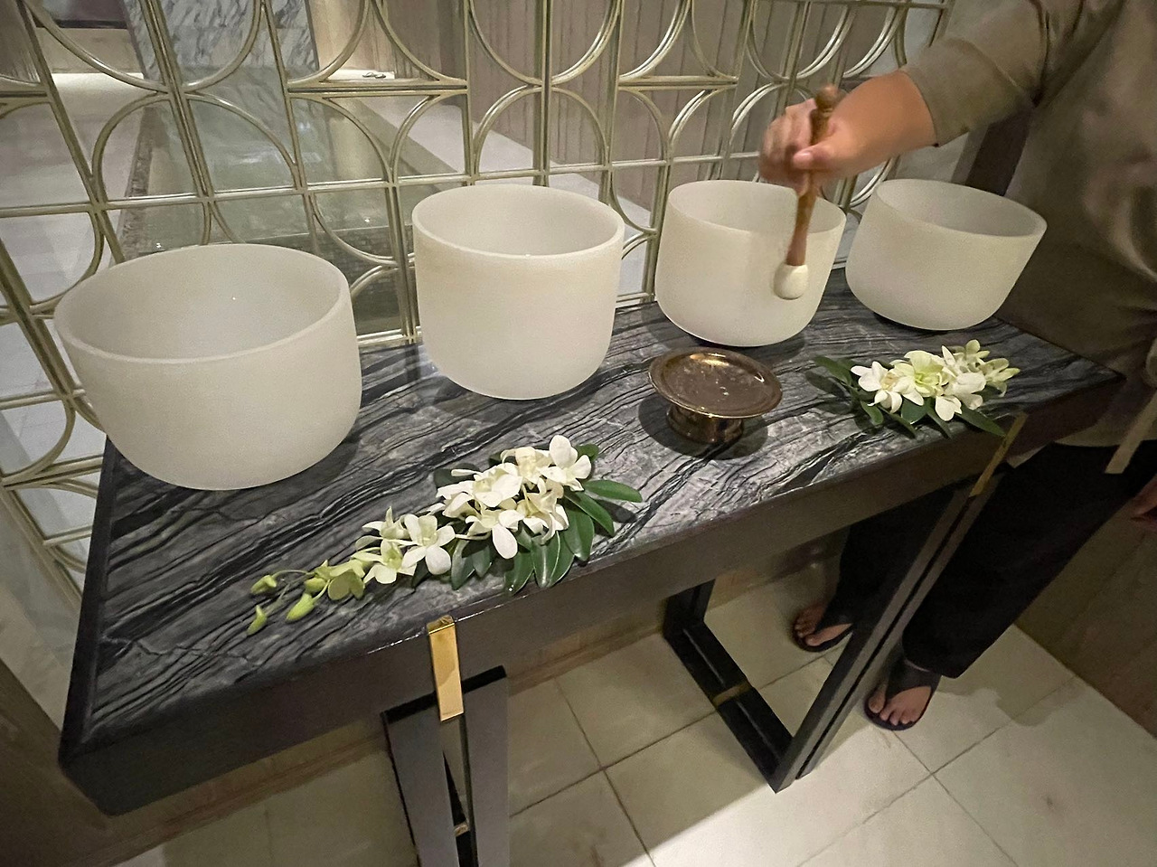 마사지 전에 설문지 작성하고 오일 고르고 그런 건 다른 마사지 할 때와 같은데 싱잉볼 소리를 들려주는 게 특이하고 좋았어요.