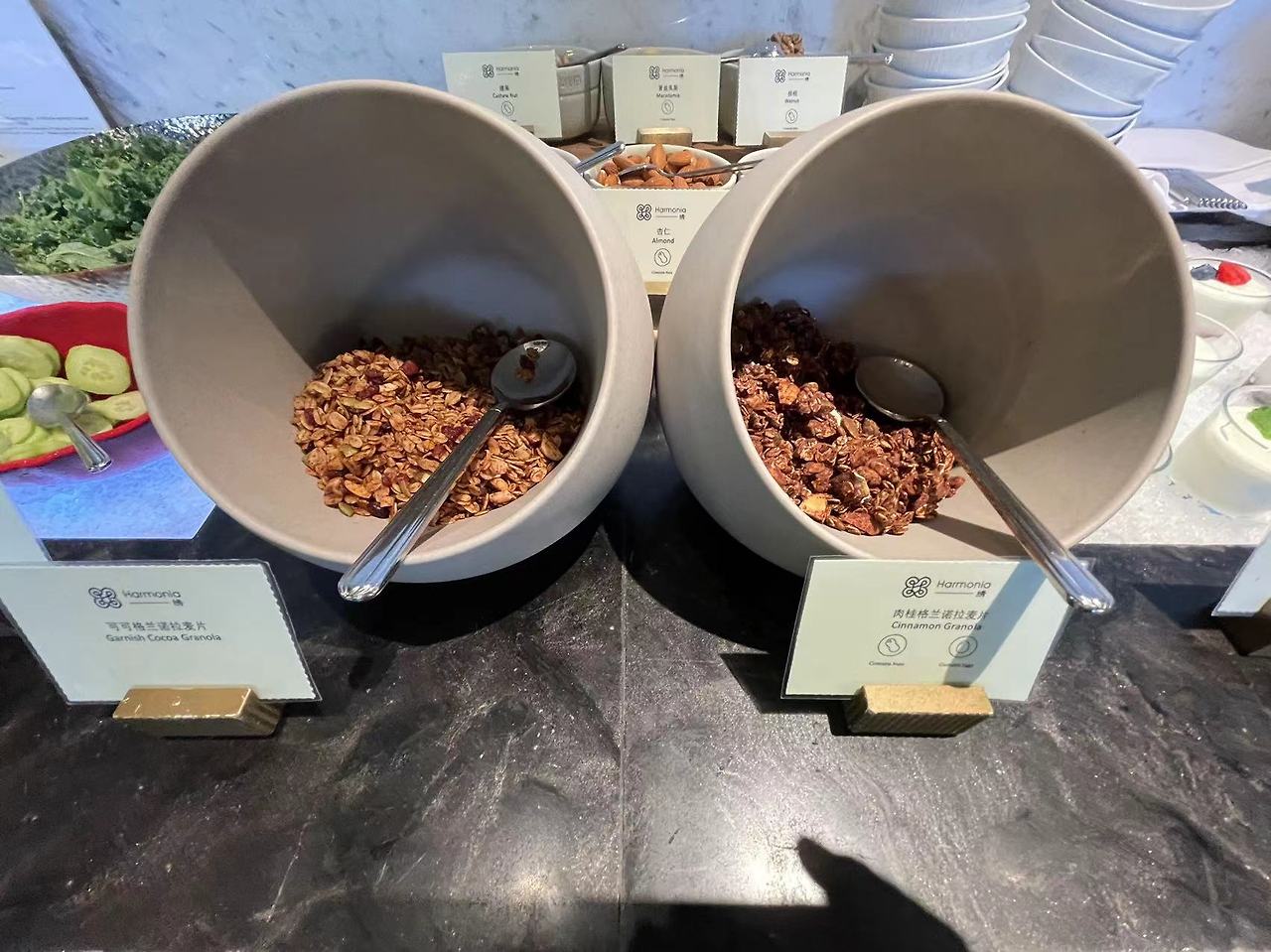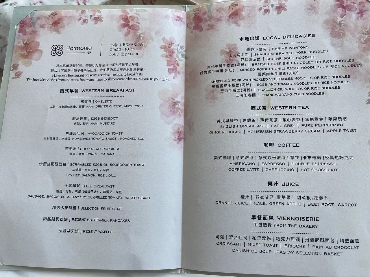 유상으로 먹으면 338위안 (약 65,000원)인데요. 다이아몬드 혜택으로 먹었어요. 담에 따로 와서 유상으로 조식만 먹어도 좋을 것 같은 퀄리티와 분위기였어요. 테이블 오더로 계란,국수,팬케이크,차를 포함한 여러 음식을 주문할 수 있어요.