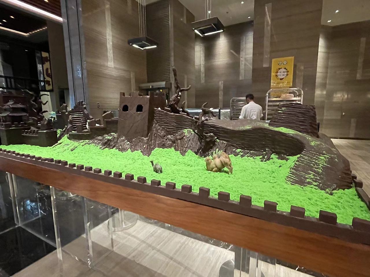인촨에 있는 명나라 장성를 모티브로 한 초콜렛 장성을 전시해 놔 눈길을 그네요. 조식은 보통 중국 호텔 수준이고요. 차 달라고 했더니 홍차밖에 없다고 했어요. 아무리 JW매리어트여도 역시 3선 도시 수준을 넘을 수는 없네요.