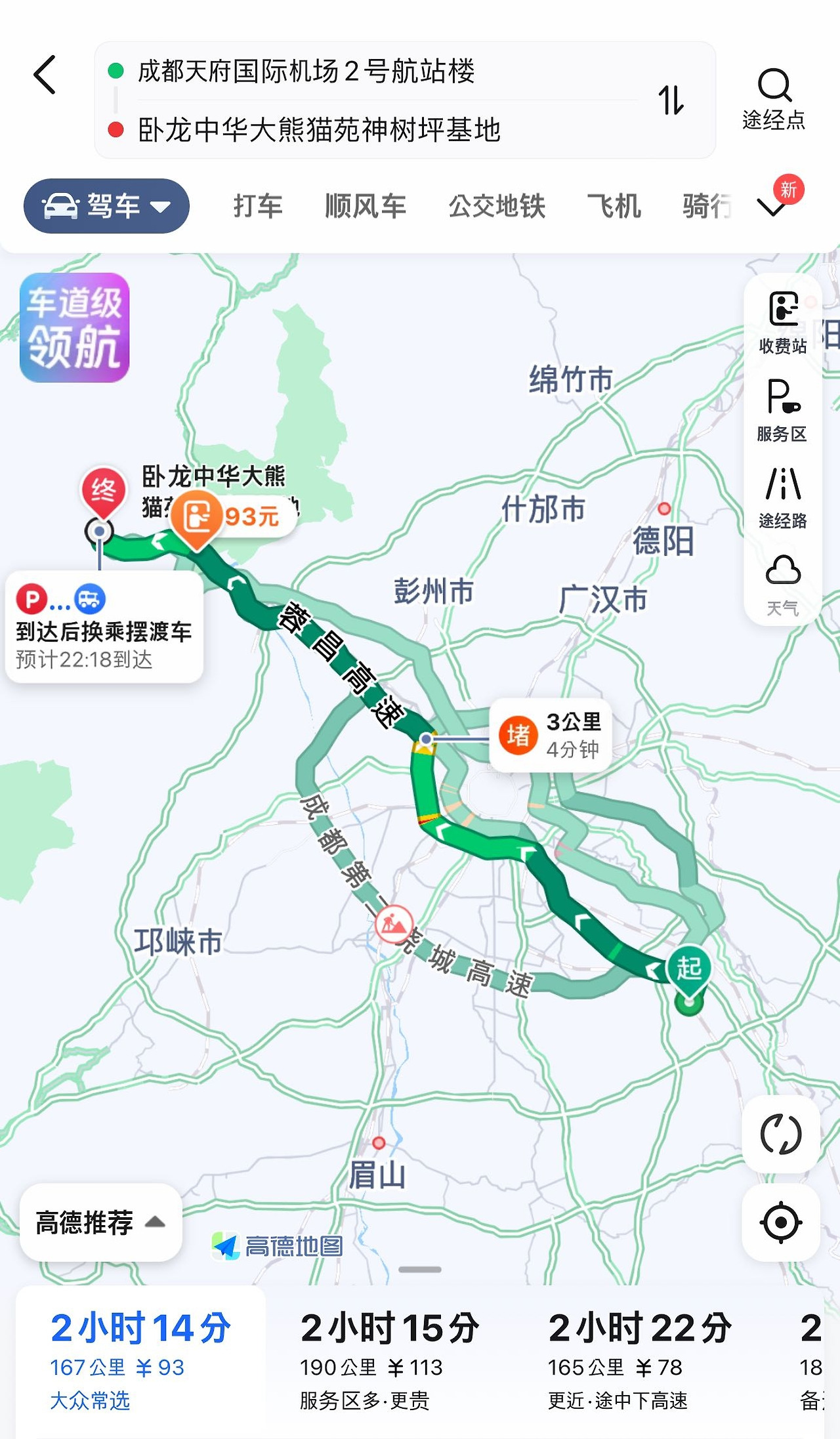 4일 차는 오전에 푸바오 보고 오후에 청두로 이동해요. 약 2시간 걸려요.