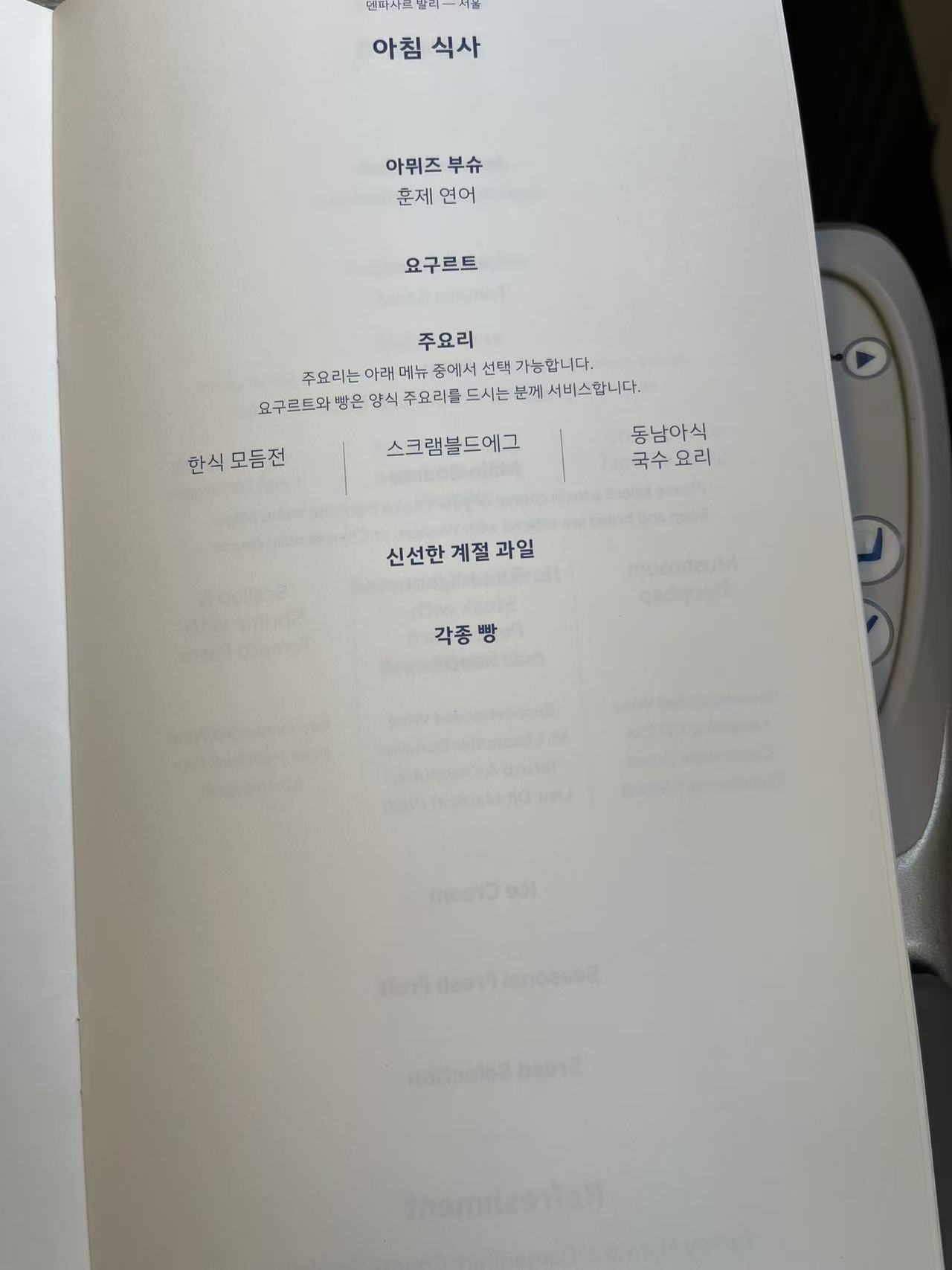 스크램블 에그를 선택했던 옆자리 승객도 한 입 먹고 숟가락을 내려놓더라고요.
