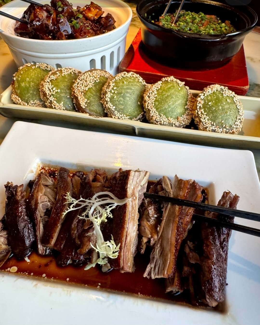 사진에는 없지만 여기 동파육은 제가 지금까지 본 동파육 중 최고였어요. 아이스크림을 올린 허니브레드, 당면 새우 요리, 녹차 고기 요리도 레전드입니다. 무엇을 주문해도 크게 거슬리는 것 없이 맛있게 드실 수 있어요. 원래 저장성 요리가 담백하고 양념이 강하지 않거든요.