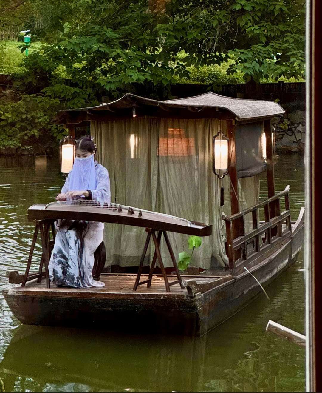 식당에 들어가면 전통 악기 연주를 보고 들을 수 있어요. 그 모습을 보고 있는 것만으로도 마음이 편안해지고 고요함이 느껴집니다.