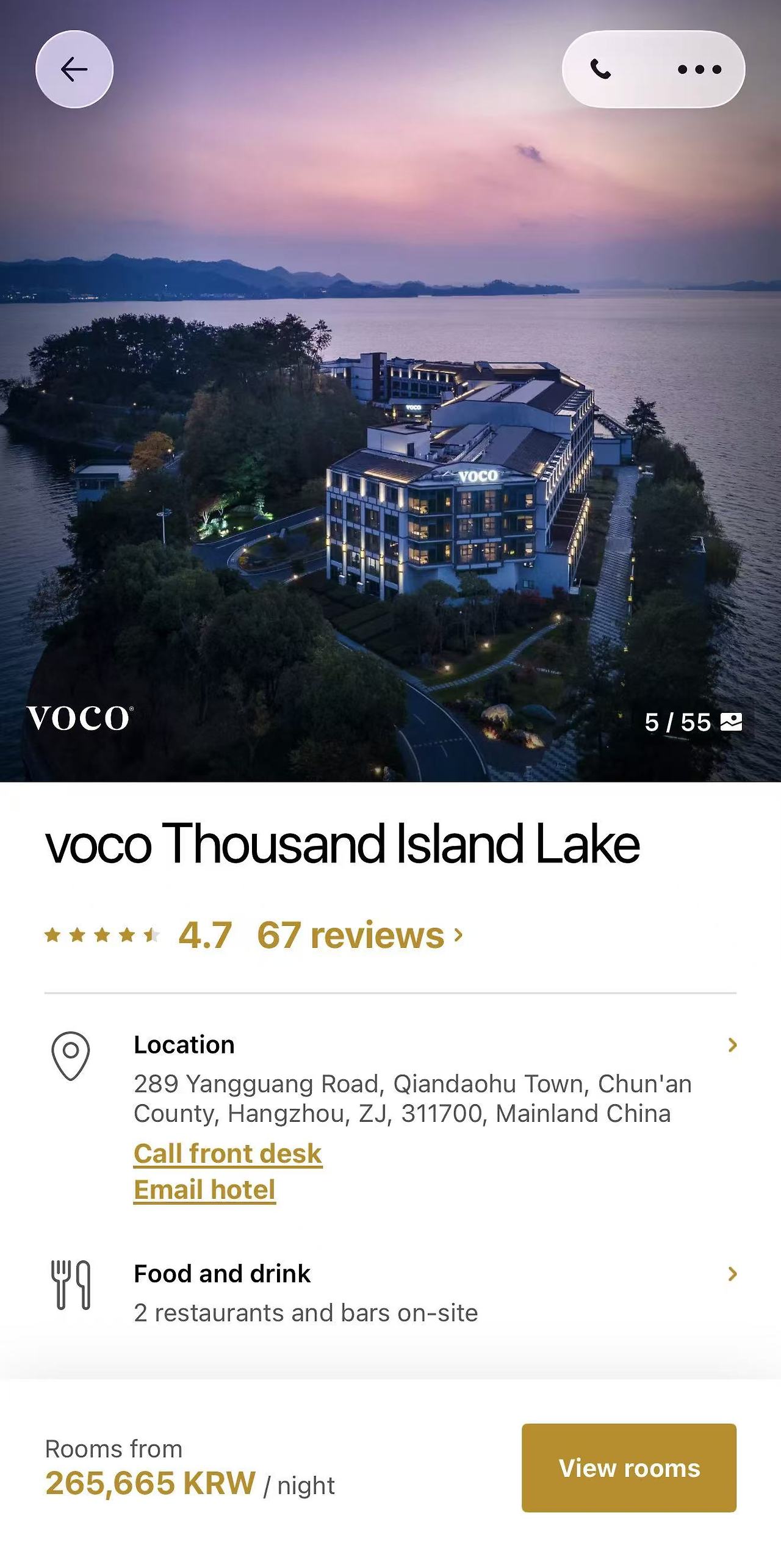천도호 주변에 생각보다 글로벌호텔이 많지 않아요. 저는 IHG 위주라 보코호텔로 갔어요.