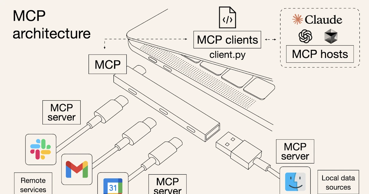 모델 컨텍스트 프로토콜(MCP)은 최신 AI 에이전트들이 외부 데이터와 도구에 접근할 수 있도록 하는 개방형 표준 통신 규약입니다. 간단히 말해, MCP는 AI 모델과 기업의 데이터 소스 사이에 안전한 양방향 연결을 표준화해 주는 “공용 어댑터” 역할을 합니다. 예를 들어, Anthropic는 MCP를 “AI용 USB-C 포트”에 비유하여 설명합니다. 마치 USB-C 규격이 제조사에 상관없이 다양한 기기를 하나의 포트로 연결하듯, MCP도 LLM 기반 애플리케이션과 여러 외부 시스템(예: 데이터베이스, 업무 도구 등)을 하나의 방식으로 연결해 줍니다.