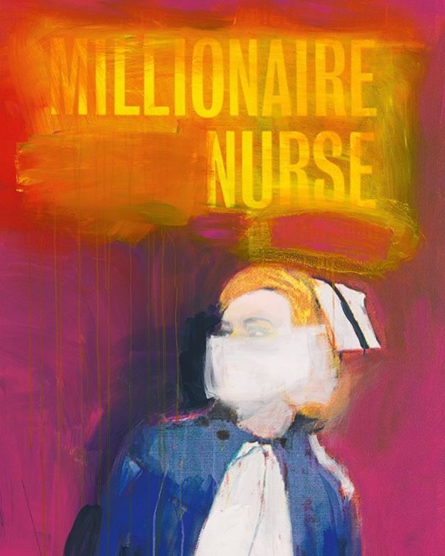 왜 그들은 마스크를 썼을까? 방역과 위생을 위해서 마스크를 쓰는 게 그들의 직업윤리이지만, 프린스의 그림에서는 다른 이유로 마스크를 쓰는 것 같다. 프린팅 한 이미지에 덧칠해서 작품을 만들어서일까? 그들의 마스크는 유난히 부자연스럽고 인위적이며, 얼굴 위에 착용한 것이 아니라 얹어졌다는 느낌이 들고 그 물질성이 강조된 것 같다. 민낯으로 완성된 피사체의 얼굴에 물감을 덮어서 마스크를 그렸으니 당연히 어색할 수밖에 없겠지만, 이것마저도 작가의 의도가 아닐까 의심이 든다.