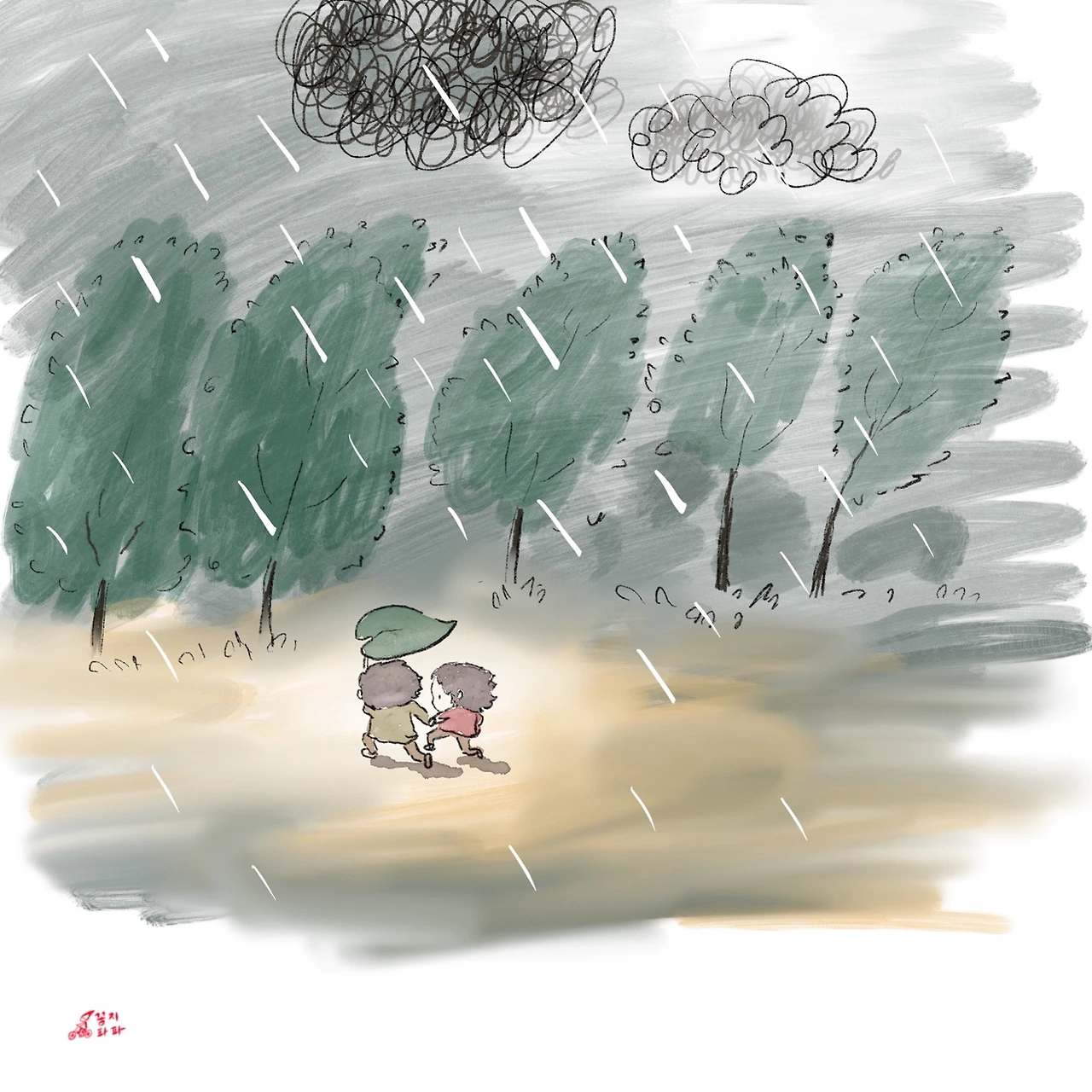 그때 빗방울이 후드득 떨어지기 시작했다.