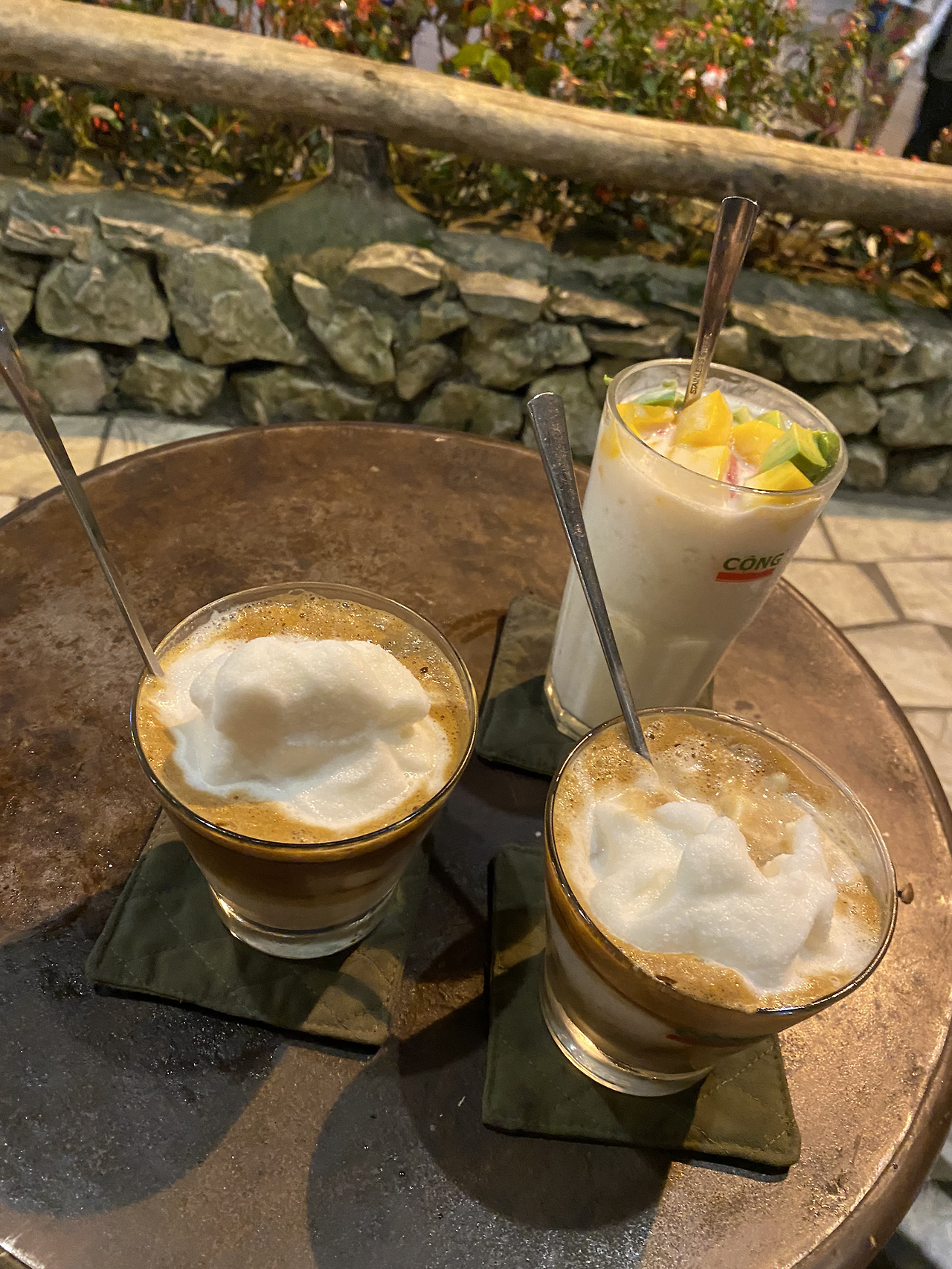 트레킹은 오후 3시가 넘도록 이어졌고 4시가 넘어 우리는 호텔로 돌아왔다. 씻고 애들을 두고 남편과 광장 아래 경치 좋은 카페로 갔다. 이런저런 얘기를 나누다 저녁 시간이 되어 다 함께 사파 광장으로 나가본다. 어둠이 내리기 시작하는 광장 주변으로 하나둘씩 전구가 켜진다. 스톤처치도 둘러보고 오가는 사람 구경도 했다. 우리 저녁 메뉴는 스트릿바비큐~~~ 다양한 재료로 만든 꼬치를 숯불에 구워 파는 길거리 식당으로 갔다. 이것저것 골라 배불리 먹고 다시 산책 겸 광장 주변을 돌다 콩카페로 갔다. 가는 길에 사파의 특산품(?)인 밤과 호떡(?) 파는 가게도 구경해 본다. 코코넛 커피를 마시고 호텔로 돌아와 휴식을 취했다. 2박 차였지만 실제로는 1박인 밤이었다.