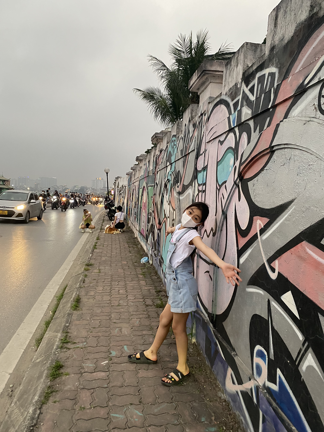 그땐 용다리 앞에서 내려 구글맵을 켜고 무작정 걸었다. 벽화 거리를 지나 꽃정원까지 서호 주변을 돌았다. 서호는 걸어서 한 바퀴를 다 돌 수 없을 정도의 큰 호수다. (나는 다음 해, 서호 근처로 이사를 했고 나의 오토바이로 서호를 여한 없이 돌아보게 된다) 여기저기서 사진도 찍고 여행 온 것처럼 낯선 풍경과 마주했다. 이때만 해도 그랩 기사도 믿을 수 없어 매번 구글맵을 켜고 차량 이동을 감시했고, 행여나 나쁜 마음으로 나를 속이지는 않는지 식당이나 카페 직원들도 의심에 의심을 하면서 눈에 잔뜩 힘을 주던 시절이었다. 그러나 낯섦은 이국적인 것이었고 어딜 가나 신나고 들떴던 시절이기도 했다.(요즘 나는 하노이의 어떤 것에도 들뜨지 않는다)