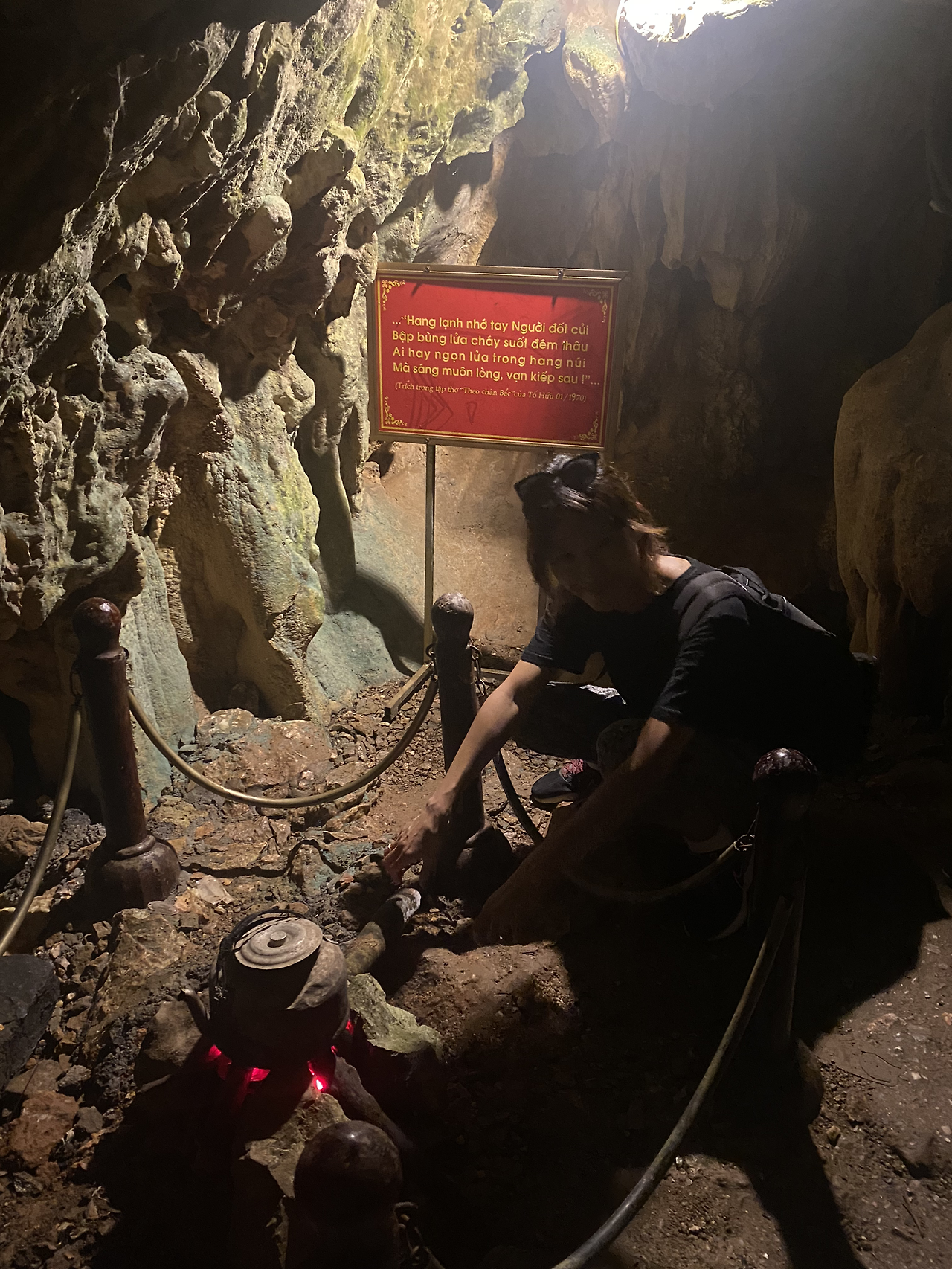 이 많은 사람들은 대체 어느 길로 왔단 말인가… 주차장엔 많은 차량과 오토바이들로 북적인다. 우리도 오토바이를 대고 호수로 간다. 에메랄드 빛 물~ 사색이 절로 되었겠네~ 좀 더 올라가니 호찌민이 숨었던 동굴 속에 호찌민의 작은 침대와 소박한 주방도구가 전시되어 있다. 민족 지도자의 고뇌와 정갈한 인생이 느껴졌다. 내려오는 길에 이미 지친 우리는 돈을 내고 드롭 서비스(오토바이)를 받았다.