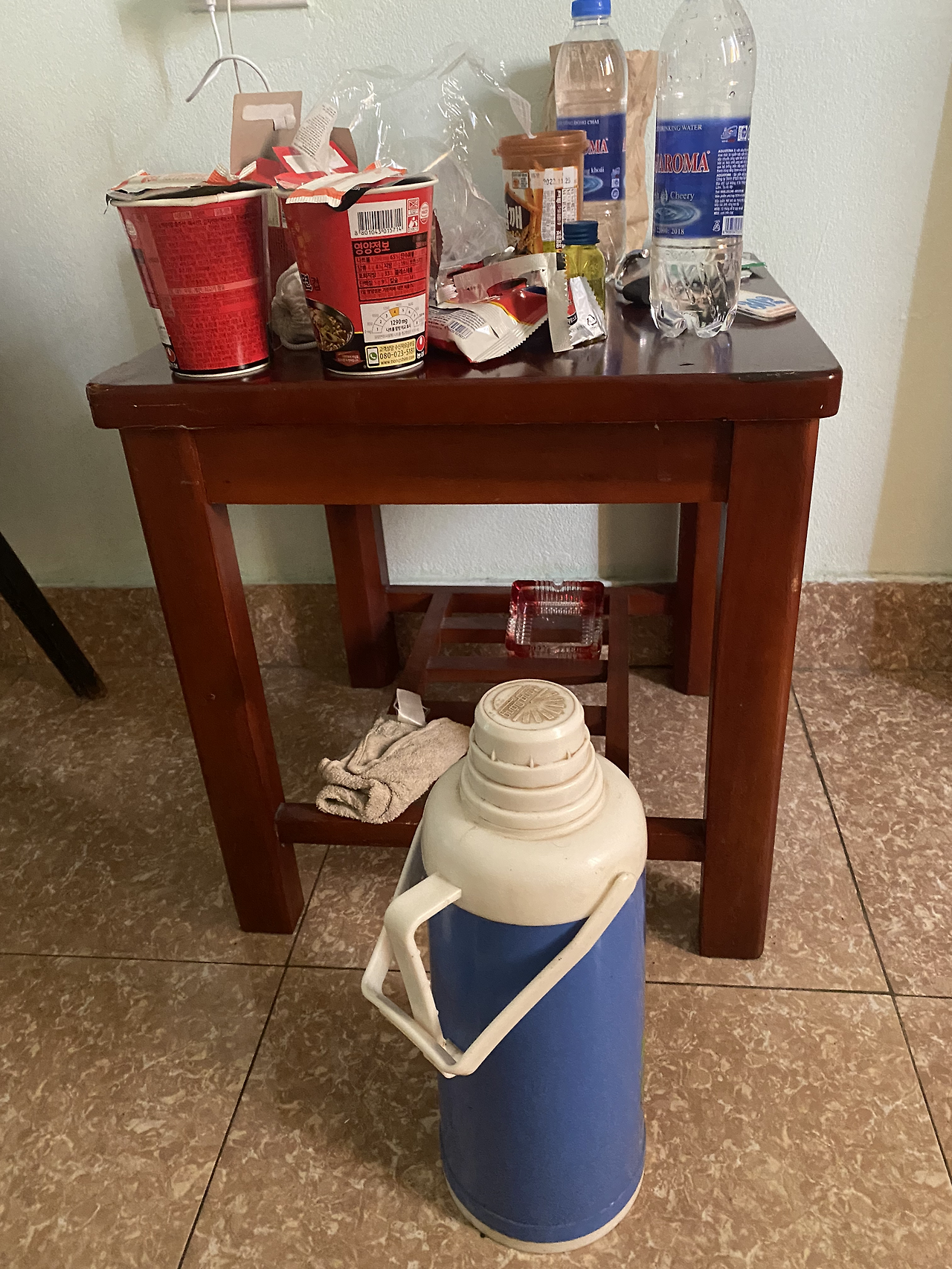 3만 원짜리 호텔은 여인숙도 못 되는 철문에 자물쇠로 잠그는.. ㅋㅋㅋㅋ뜨거운 물 달라니 저걸 주네~ ㅋㅋㅋㅋ 신기한 경험이로구나~웃음이 난다~ 숙박비가 배로 뛰었다더니…. ㅋㅋㅋㅋ 그래도 다음날 아침 주인아저씨가 시내까지 태워주셔서 돈을 좀 드렸다. 두 번째 밤은 신라면과 맥주로 위로…