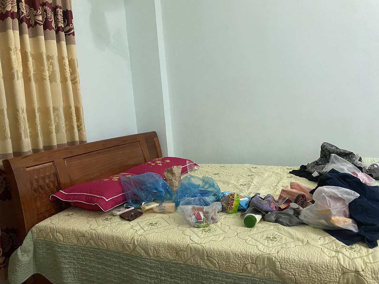 천천히 도로를 가로지르고 있었고 나는 클랙슨을 울렸는데 할아버지가 가만히 서서 날 본다. 나는 속도를 줄였지만 할아버지를 피해 핸들을 꺾으면서 미끄러졌다. 점퍼와 바지에 구멍이 나고 그 사이로 피가 흐른다. 다행히 아이는 크게 다치지 않았다. 지나가던 사람들이 오토바이를 세워준다. 하아… 이제 모든 것에 초연해지는 단계… 딸아이는 할아버지를 치지 않기 위한 내 선택을 칭찬했다. 눈물을 삼키고 조심조심 다시 까오방 시내로 향한다.