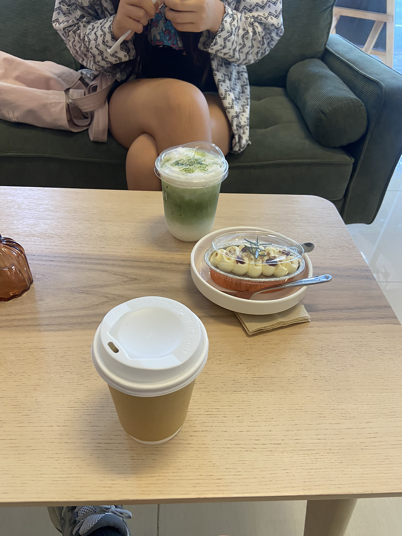 호텔로 돌아가 씻고 외출 준비를 했다. 그때까지 자는 아이는 그대로 두었다. 매일 강행군이었으니… 준비를 마치고 아이를 깨웠다. 오늘은 방콕 현대미술관(MOCA)이 메인 스케줄이다. 일단 운동 나가서 봐둔 호텔 근처 카페에서 모닝커피 한잔~ 딸아이는 맛차라떼에 당근케잌~ 이걸로 아침 때우기로~