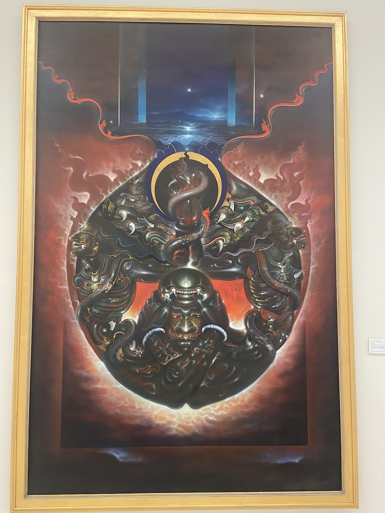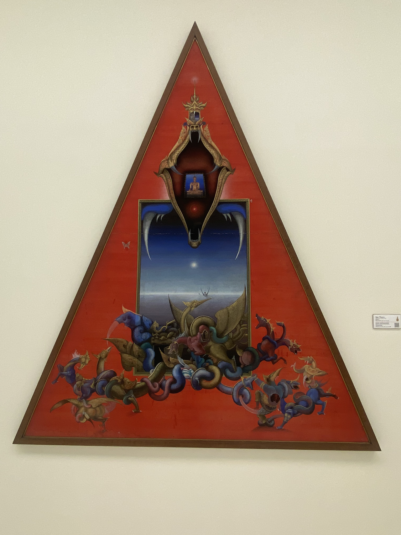 내 맘에 쏙 든 작품들~ 큐알로 작품 해설도 볼 수 있다. 해설보다 나의 해석으로 감상했다. 불교 사상을 공부한 터라 흥미롭게 본 작품이 많다. 훨씬 다양한 작품들이 있고 퀄리티도 생각보다 좋고 전시장도 훌륭하다. 300밧 안 아깝다. 3시간 넘게 머물렀다. 현대 미술은 해석의 자유를 허용하기에 나는 현대미술이 재밌다. 예술적 재능이라고는 1도 없고 모든 것을 텍스트화해서 이해하는 나는 예술, 그 직관적 감흥의 세계를 늘 동경해 왔다. 여행 짬이 좀 생기면서 박물관, 미술관 갈 일이 많아졌고, 책도 찾아 읽고 영상도 찾아보며 나름 노력해 왔다. 그래도 나는 음악, 미술은 잼뱅이다. 그래서 참 슬프다. 하지만 요즘은 나만의 해석, 느낌에 충실하게 감상하려고 노력하고 있다.