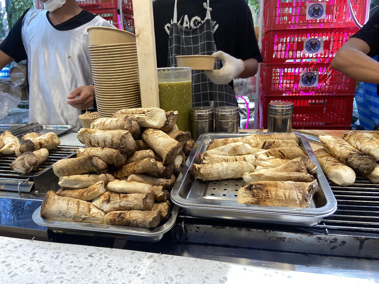 마켓 초입에서 귀걸이(피어싱)를 샀다. ㅋㅋㅋ 나중에 못 찾을까 봐~ 딸아이는 두바이 초콜렛도 산다. 오렌지 주스와 버섯 구이도 맛보고 목적지인 미술관으로 향했다. 돌아오는 길에 다~~~ 사 먹기로 하고!!