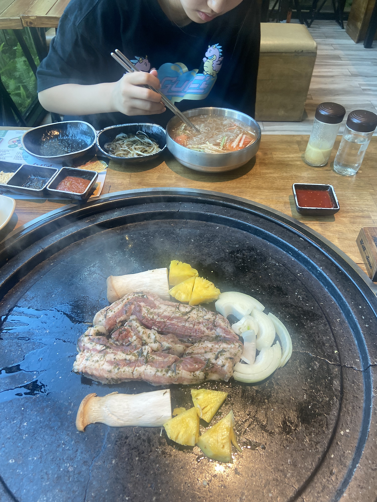 4시 55분 비행기라 3시 출발하기로 하고 2시에 점심 먹으러 갔다. 나 낼부터 일해야 하니까 몸보신 필요해~~ 고기 먹자!!라고 딸아이를 꼬셨다. 빵 먹고 배 안 고프다는 애를 고깃집에 강제 동행 시켰다.