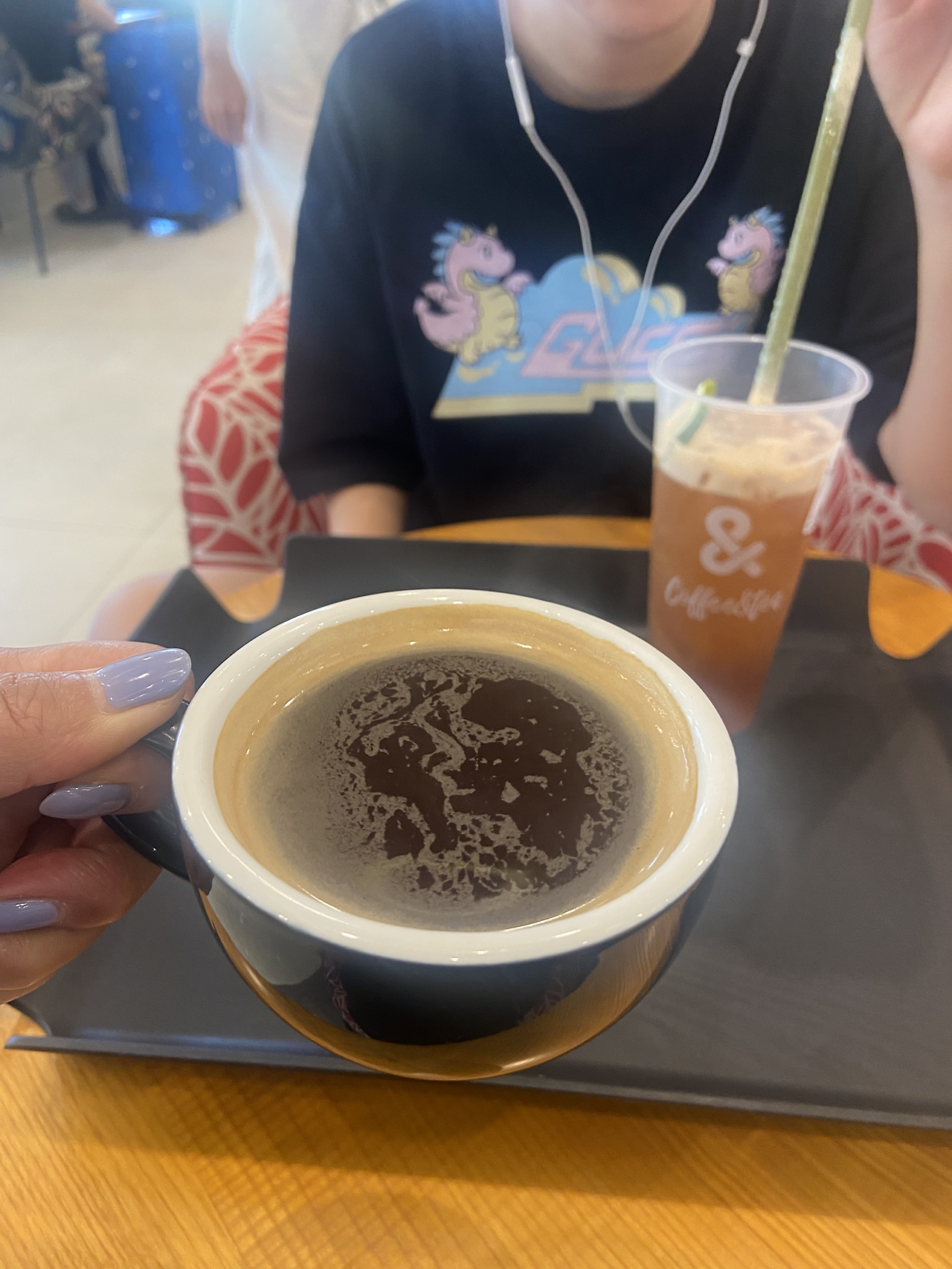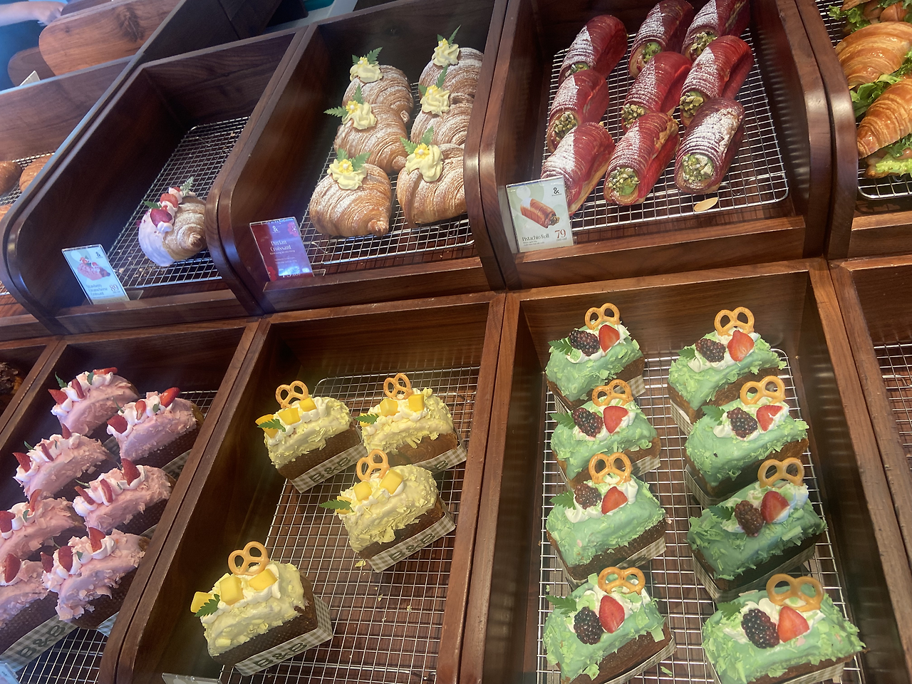 호텔 로비에 가방 맡기고 일단 커피 한잔 하러 갔다. 호텔 근처를 지나다 봐 둔 커피숍으로 가려다 바로 옆 배이커리 카페로 갔다. 딸아이 뭐라도 먹여야 할 것 같아서다. 우와~~~ 빵 종류도 많고 다들 너무 예쁘다. 난 뜨아 시키고 딸아이는 복숭아티 시켰다. 딸아이는 페스츄리 하나랑 컵케잌도 시켰다. 카페에서 난 유럽 여행 계획을 위해 자료 조사 좀 하고 이번 여행 지출 정산도 하면서 쉬었다. 딸아인 네플릭스로 약한 영웅을 본다.