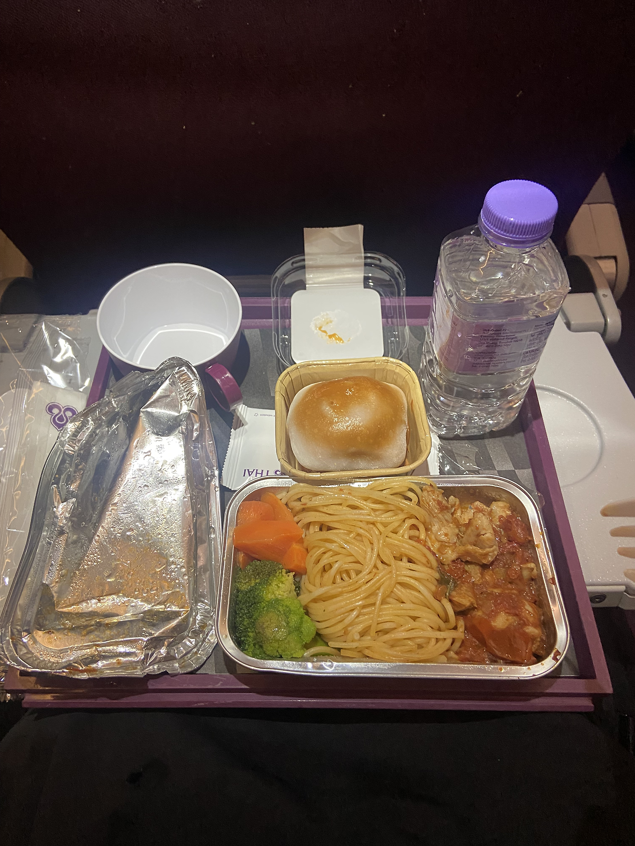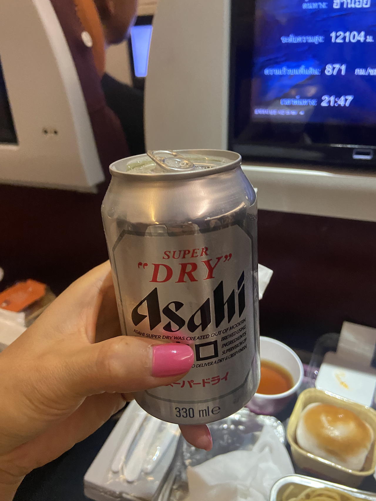비행기는 30분 가까이 지연되었다. 물론 같은 타이항공에 연결 편이니 항공사가 책임지겠지…만! 계획에 차질이 생기면 어쩌나 싶다. 승무원에게 물었더니 “Don’t worry”란다. 오키. 워리 안 해. 1시간 50분 가는데 기내식도 준다. 역시 국적기 레벨은 다르다. 맥주도 아사히와 싱하가 있다. 굿!