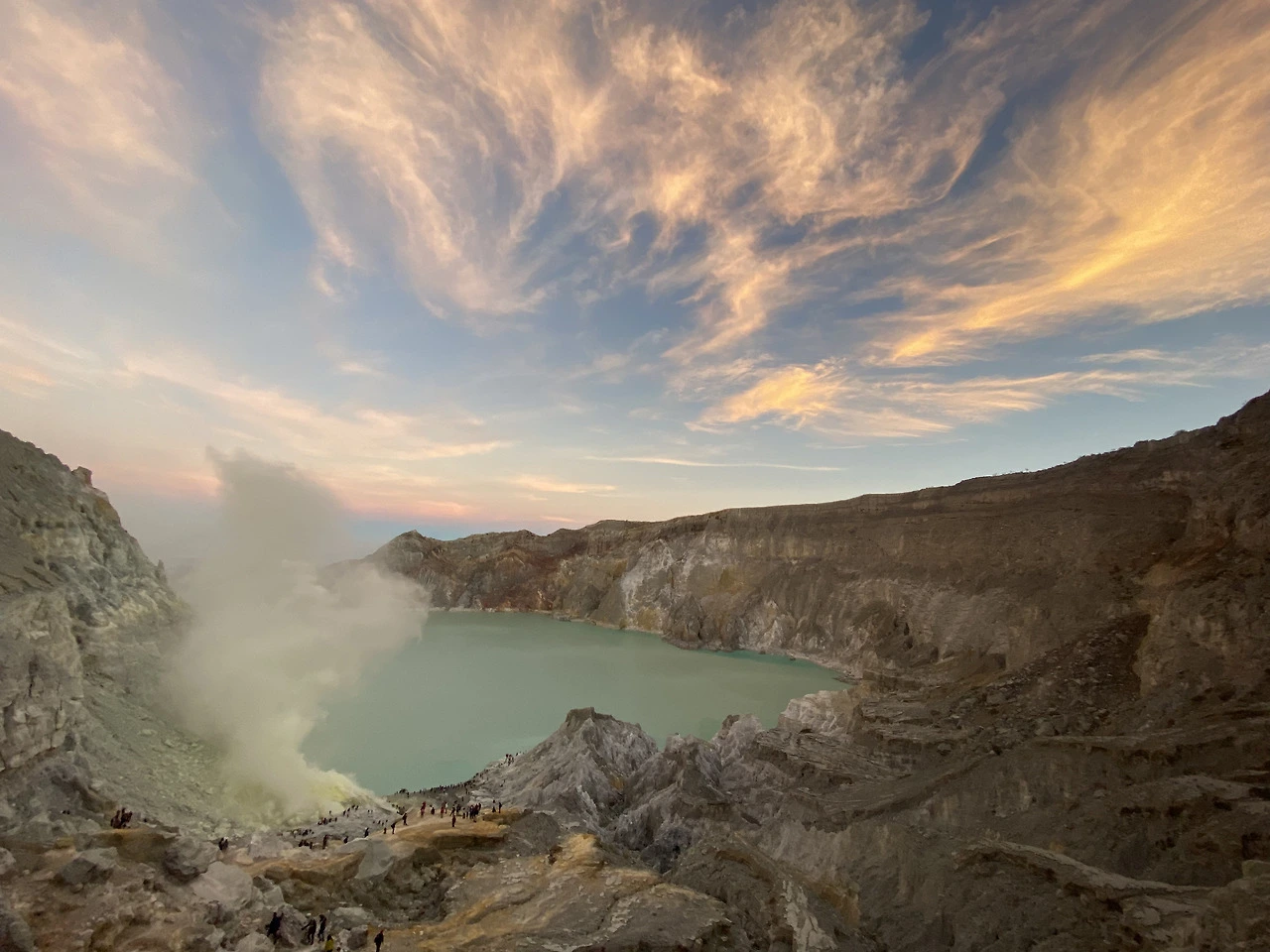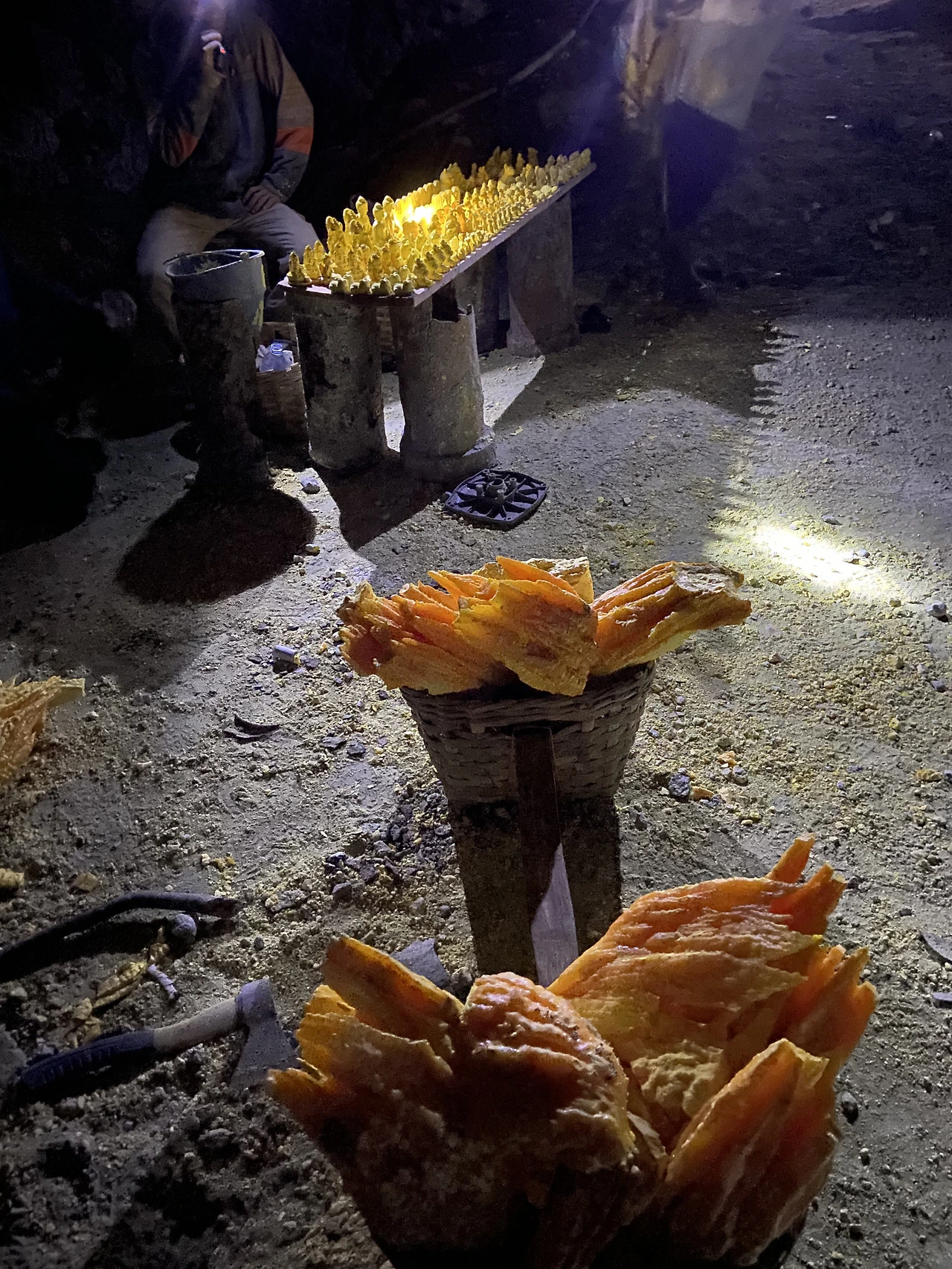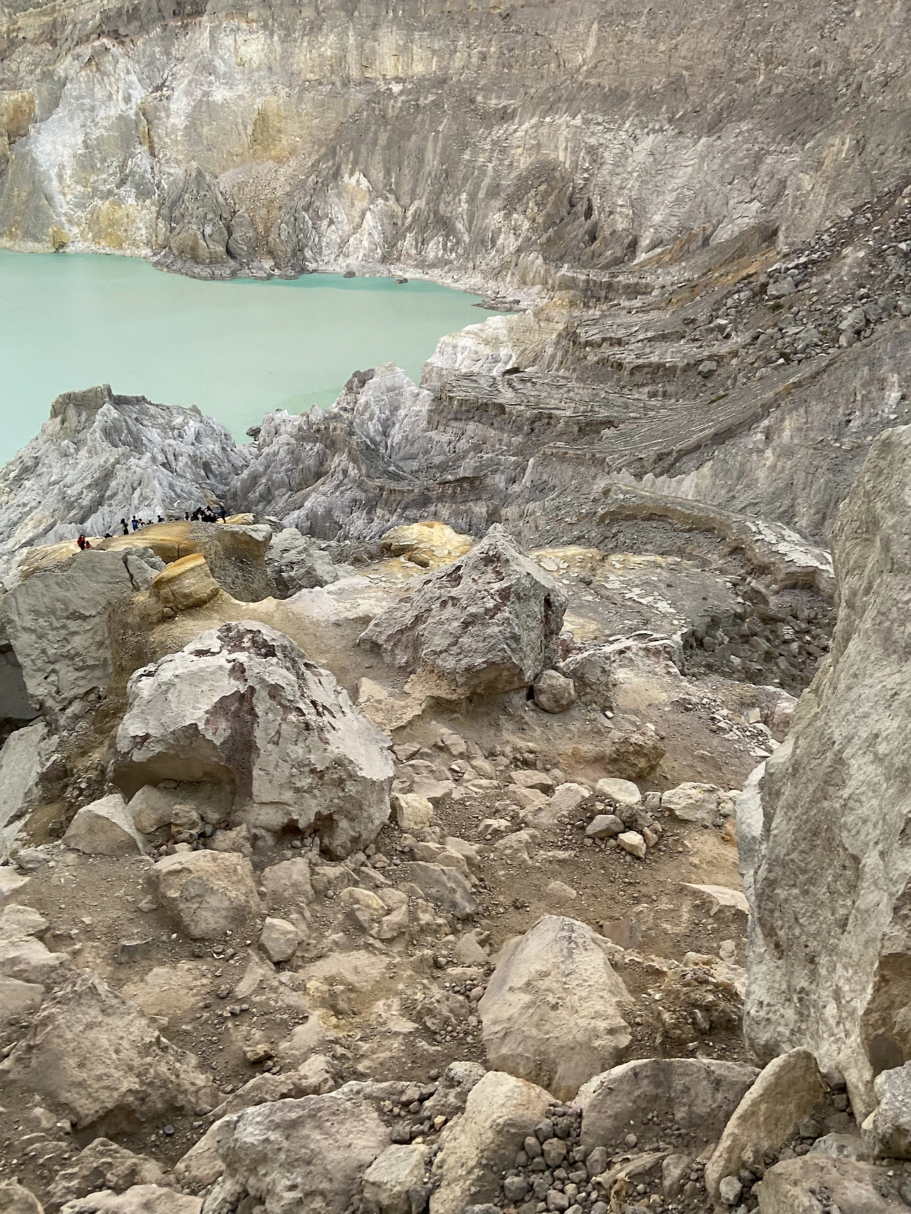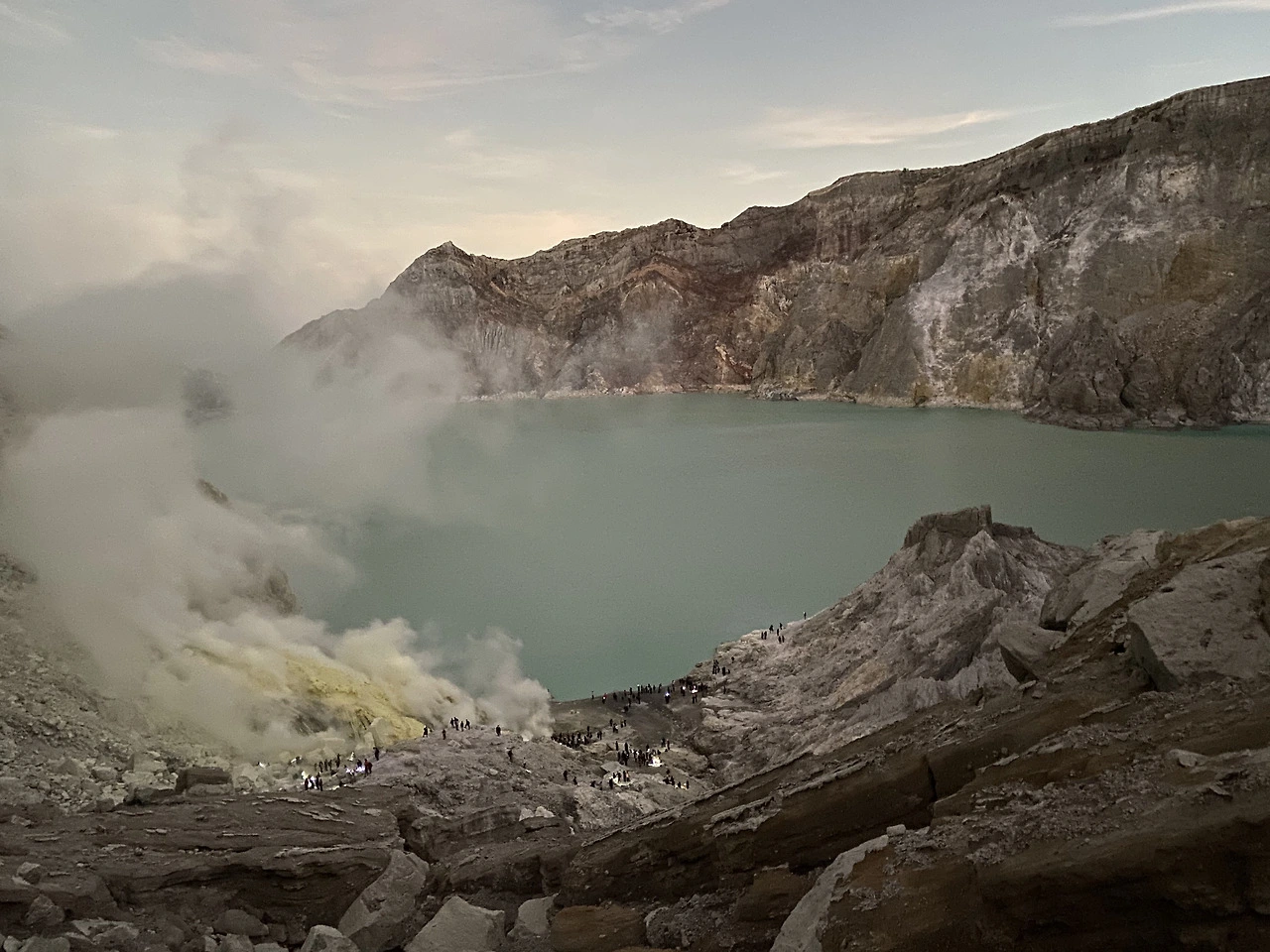 드디어!! 블루 파이어 영접!!! Wow!!!!! 언빌리버블~~~ 너무 아름답다. 가까이 가니 열기가 훅 온다. 사진을 찍으려는 사람들로 붐빈다. 우리는 비교적 일찍 도착한 그룹에 속해 그나마 가까이서 사진도 찍고 블루 파이어도 잘 볼 수 있었다. 3시에서 5시 사이 해뜨기 전에만 보인다는 블루 파이어를 4시 조금 넘어 보았던 것이다. 늦게 올라온 사람들은 블루파이어를 못 봤다.(우리가 올라가는 동안에도