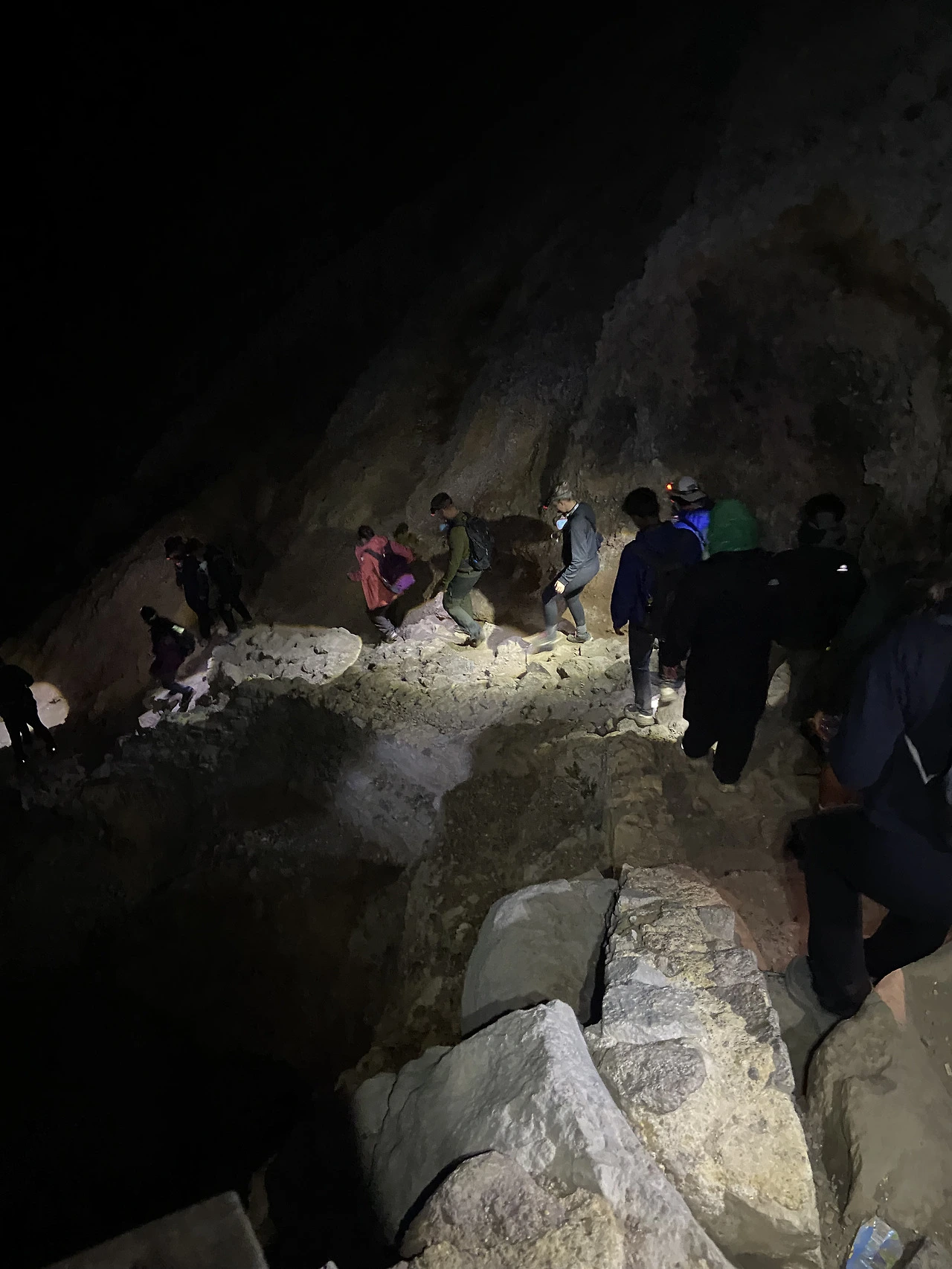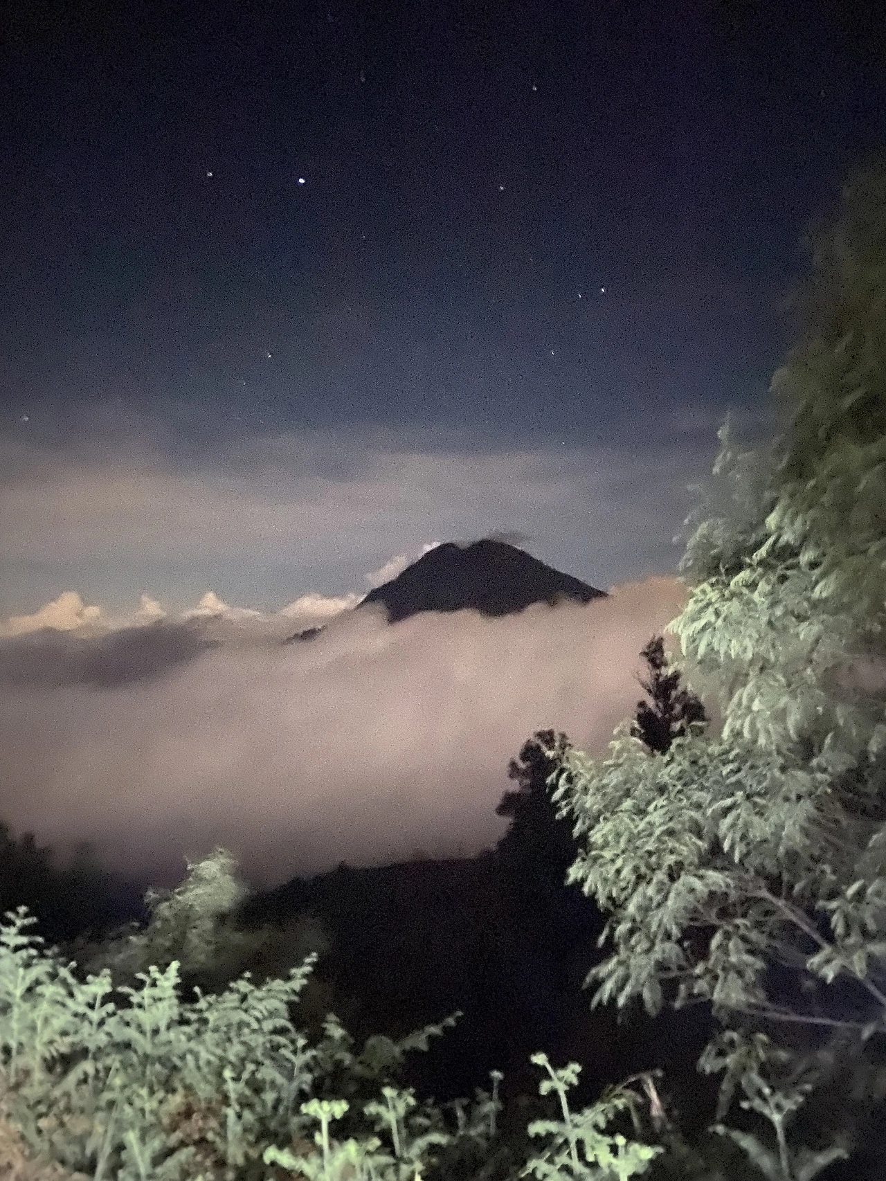 이제부턴 가파른 오르막이다. 고갤 들어 하늘을 보니 별이 쏟아질 듯 아름답다. 하노이에서 단 한 번도 별을 보지 못했던 터라… 황홀하기 그지없다. 그 자체로 비현실적인 감성이다. 화산 블루 파이어 별 … 단어들이 너무 비현실적이잖아… 오르다 보면 솟은 산봉우리 아래로 구름 띠를 두른 산과 그 위에 빛나는 별의 그림 같은 장면도 보인다. 됐네 됐어. 이미 아름답다. 물론 오르막은 ㅋㅋㅋ 힘들다. 잔잔한 돌멩이들이 많아 발이 자꾸 미끌린다. 숨도 차고 다리도 아프고 땀도 난다. = 힘들다. ㅋㅋㅋ