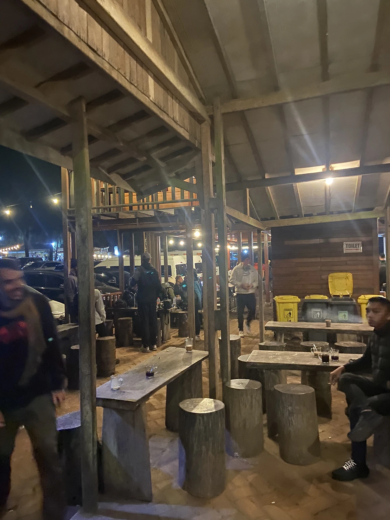 11시 30분에 호텔을 출발하여 30분쯤 가다 헬스 체크(혈압 검사)를 한다. 간단한 체크 후 어둠 속을 달려 1시간 정도 가면 베이스캠프(그냥 카페와 가게들이 모여 있는)가 나온다. 1시에 도착했는데 2시에 게이트 오픈이란다.