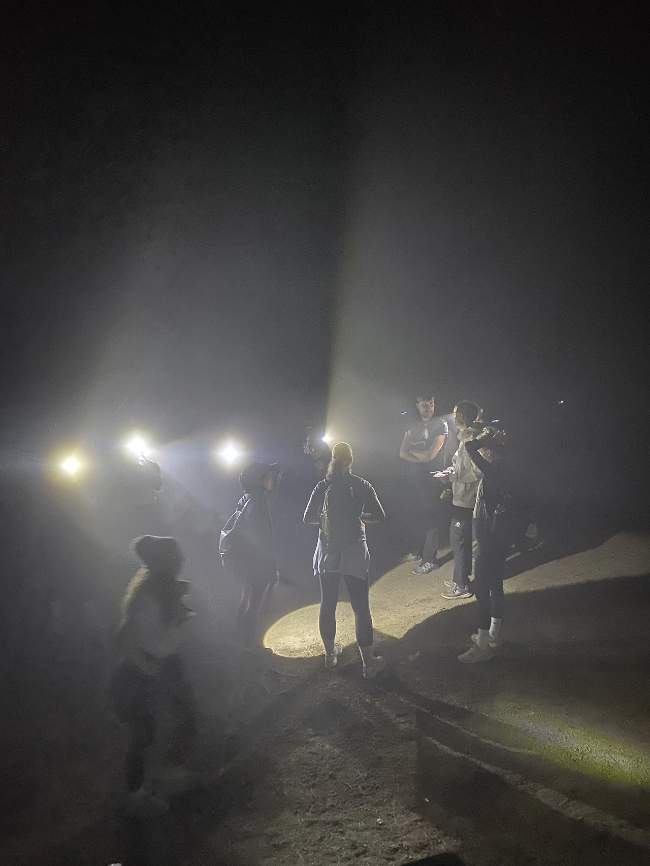이제 대망의 출발 시간~~ 그 어느 때보다 긴장이 된다. 남편이 반대했고 먼저 다녀온 친한 언니도 비추했지만 억지로 강행했기에 찝찝하기도 하고 혹시나 사고가 날까 실제 겁도 나고.. 심경이 복잡했다. 더 정신을 집중해야겠다고 맘을 단단히 먹은 터였다. 출발 시간이 되자 가이드가 마스크와 고글 핸드 랜턴 두 개씩을 주며 내 가방에 넣으란다. (엥? 안 들어주고?? 싶은데 일단 가방에 넣음) 살짝 쌀쌀해서 경량패딩 꺼내 입고 딸아이 자켓도 입혔다. 딸아이는 목수건도 묶어주었다. 브로모 화산 투어 때 5월이었는데 밤에 너무 추웠던 기억이 있어 걱정했는데 생각보다 춥지는 않았다. 게이트로 가자 어디에 다들 있다 온 건지 사람들이 북적인다. 그룹 투어는 인원 체크하고 팀 이름도 정하고 난리법석이다. 우린 가이드 따라 조용히 그들을 가로질러 출발했다.
