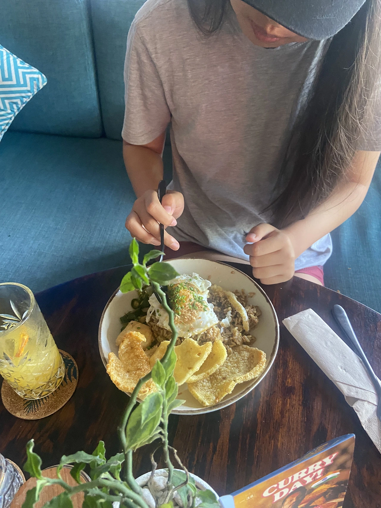 일단 아침 먹고 생각하기로~딸아이가 무릎이 모래에 쓸려 상처가 난데다 팔이 아프다 한다. 아프냐 나도 아프다.. ㅜㅜ 아침 먹으며 회의를 했다. 서핑 레슨을 안 가면 짱구 비치에 가서 바다멍을 하자고…