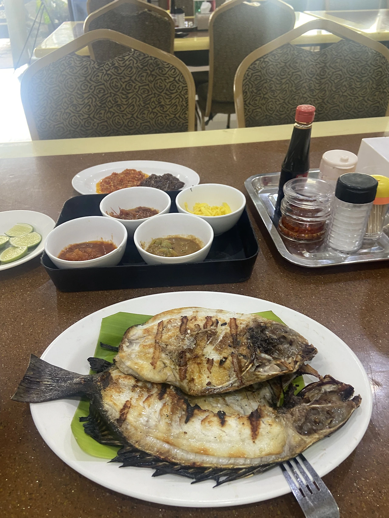 갑자기 비가 쏟아진다. 난 괜찮아요~~ 우산이가 있그등요~ ㅋㅋ 배낭 메고 우산을 쓰니 우스꽝스럽다. 바다멍 좀 하다 여기가 해산물이 유명하대서 급 검색~ 평점 젤 높고 후기 많은 식당 찾아 10여분 걸었다. 비 그치고 해가 난다. 덥다. 우씨… 그렇게 도착한 식당에 사람이 아무도 없다. 밥 먹을 수 있냐니까 있대~~ 일단 생선구이, 볶음밥, 야채와 새우가 든 수프 ㅋㅋ 세 개를 시키니 웃는다. 왜에~~~ 다 먹을 거라고!!!! ㅡㅡ 생선구이 작은 거, 볶음밥도 양 조금만…. 달라고 했는데 ㅋㅋㅋ 생선 구이 크고 볶음밥은 한양푼이 나왔다… ㅋㅋㅋ 해장용 수프는 국그릇 정도.. ㅋㅋㅋ(폰 충전하느라 생선만 찍음ㅎㅎ)