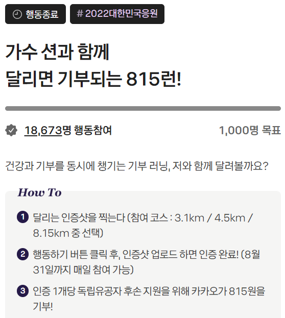션의 선한 영향력에 고개 끄덕이며, 매년 815런에 동참하여 독립유공자 후손 기부에 동참하겠다거나