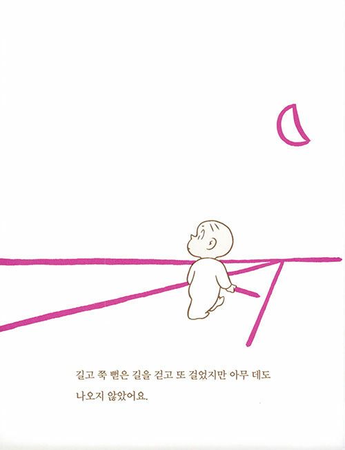 그림이란 게 몇 가지 선으로 이루어져 있는 것이구나. 라는 명제를 그림책을 읽으면서 끊임없이 생각했던 것 같다. 그리고 너무나도 쉽게 죽죽 그은 선 몇 가닥으로 모험을 떠나고 위기를 극복하는 해럴드의 용기가 부러웠다. 이렇게 쉬운 그림을 말이다. 그리고 이 그림은 올곧이 자신이 생각해 내는 데로 이루어진다. 당연하다. 그림이니까 말이야. 하얀 도화지 위로 날아다니는 자주색 펜은 원하는 모든 것을 이루게 해 줄 수 있다. 일면 참 매력적인 걸. 내가 마음대로 해도 아무도 뭐라 하지 않는 무한대의 공간을 가지는 것 말이다.