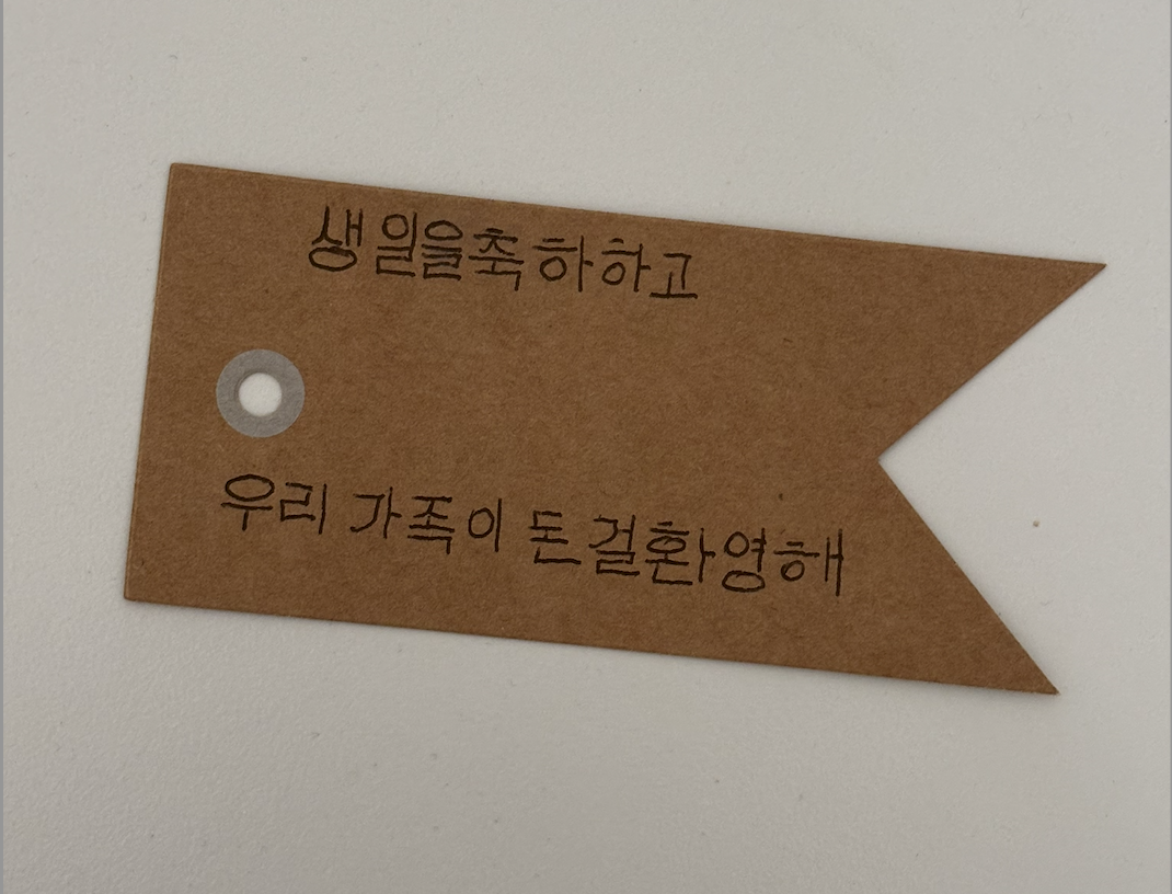 마음이 따뜻하신 시어머님은 그날을 그냥 지나치지 않으셨다. 작은 선물을 건네시며, 손글씨로 꾹꾹 눌러쓴 카드 한 장을 내밀어주셨다. 카드에는 서툴지만 정성이 담긴 한글로 이렇게 적혀 있었다.