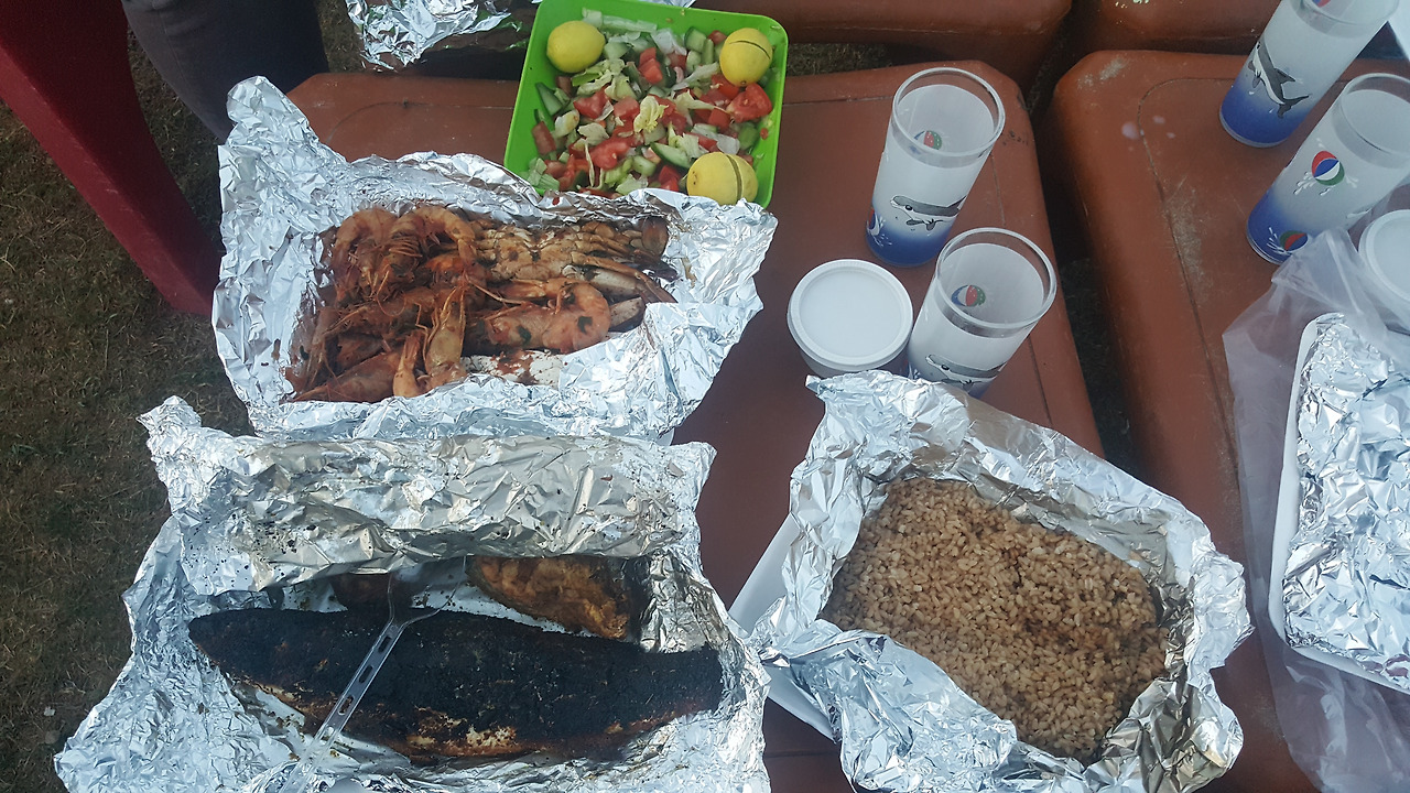 음식은 생선구이와 새우구이 그리고 볶음밥. 야외에서 먹어서 그런지 정말 맛이 있었다. 도시가 바닷가 근처이다 보니 해산물이 신선하고 맛도 좋았다. 특히 친구들과 다같이 먹어서 그런지 즐겁고 행복하고 음식도 더 맛있게 느껴졌다.