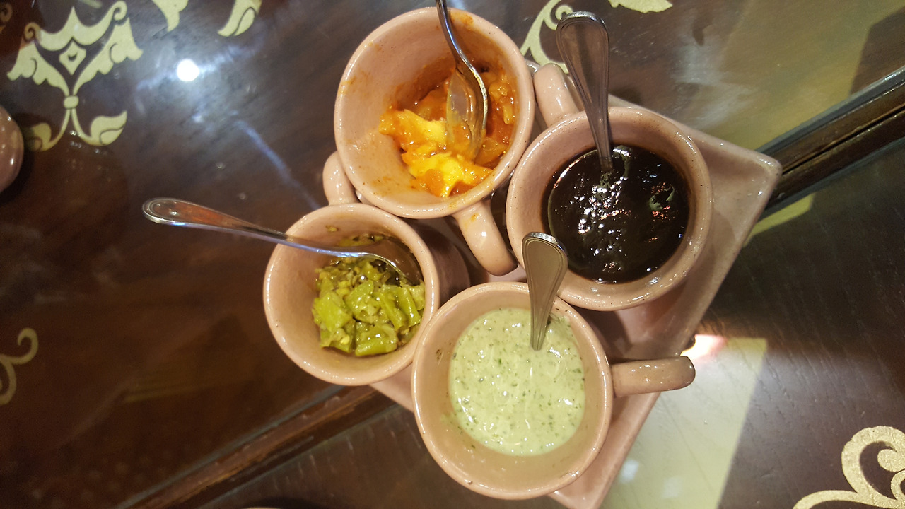 처음 나온 것은 소스였는데 그 중에 망고를 절여놓은 소스가 있었다. 친구들이 한번 먹어보라고 계속해서 이야기 하는 것이 수상했는데 역시나. 먹는 순간 정말 소리 지를 뻔했다.
